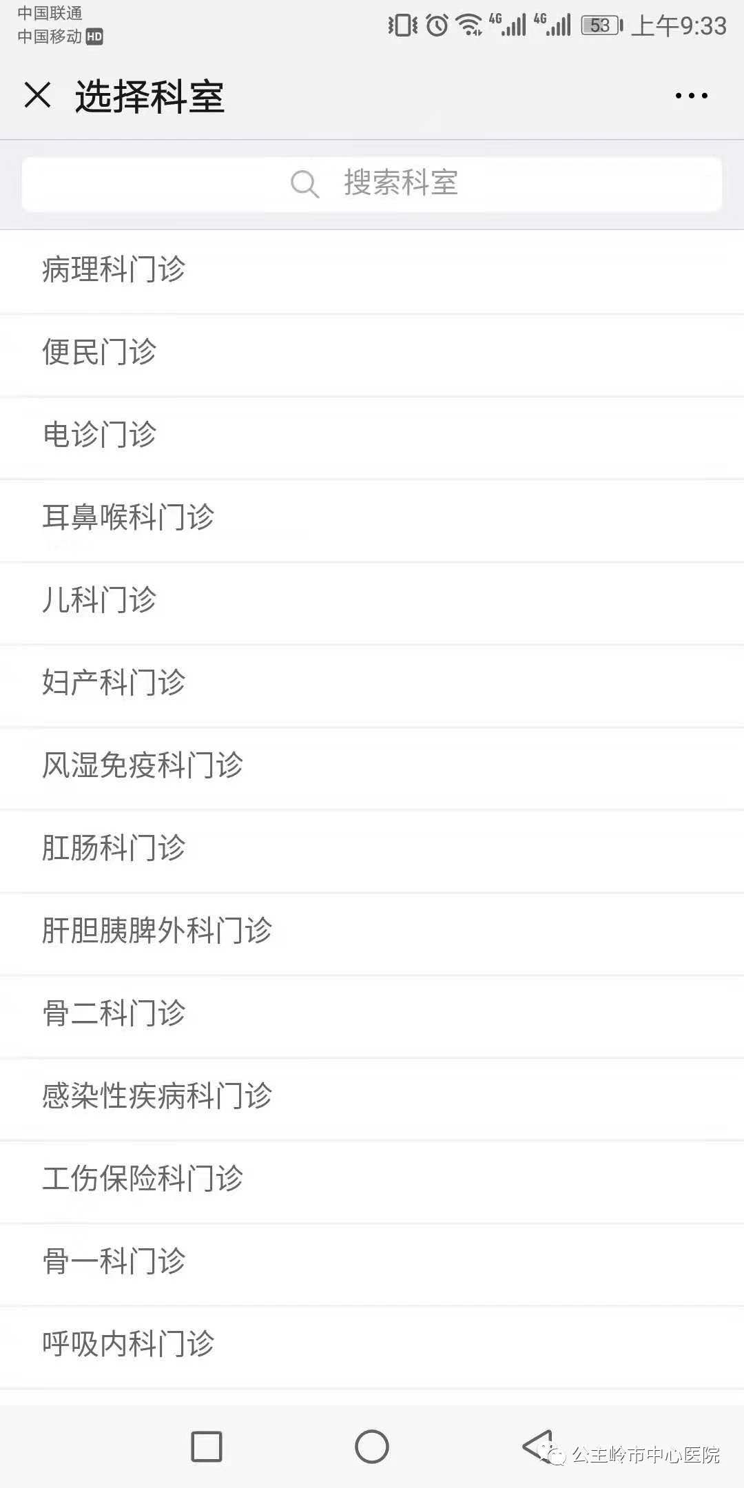 1、方式一:在微信中搜索公众号【公主岭市中心医院】,点击关注进入即可。