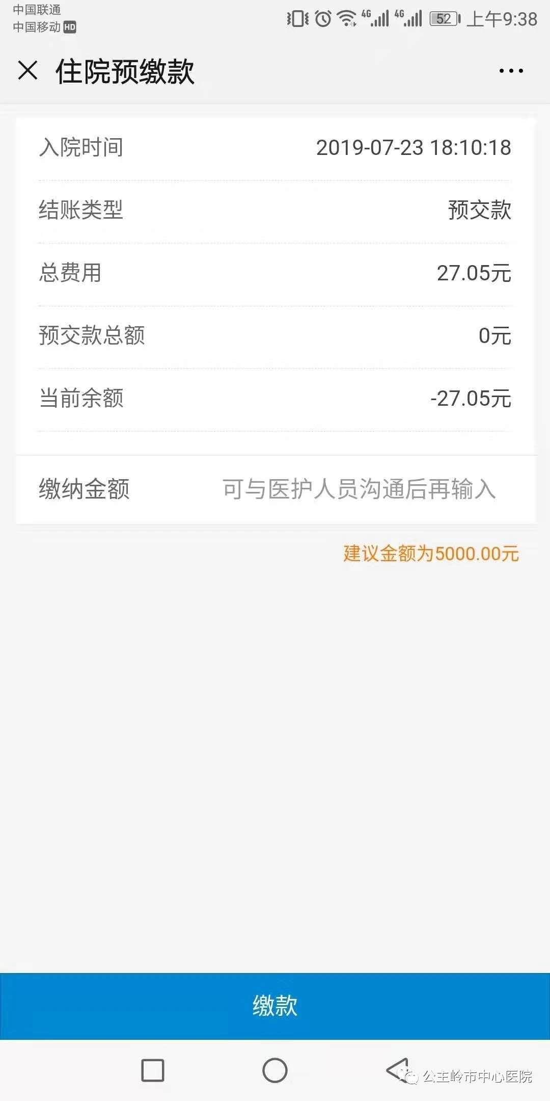 办理入院后,如需缴纳住院预交金,点击【住院缴费】。