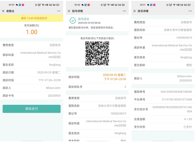5.提交问卷后进行线上缴费,外籍患者可使用生成的电子二维码进行就诊。