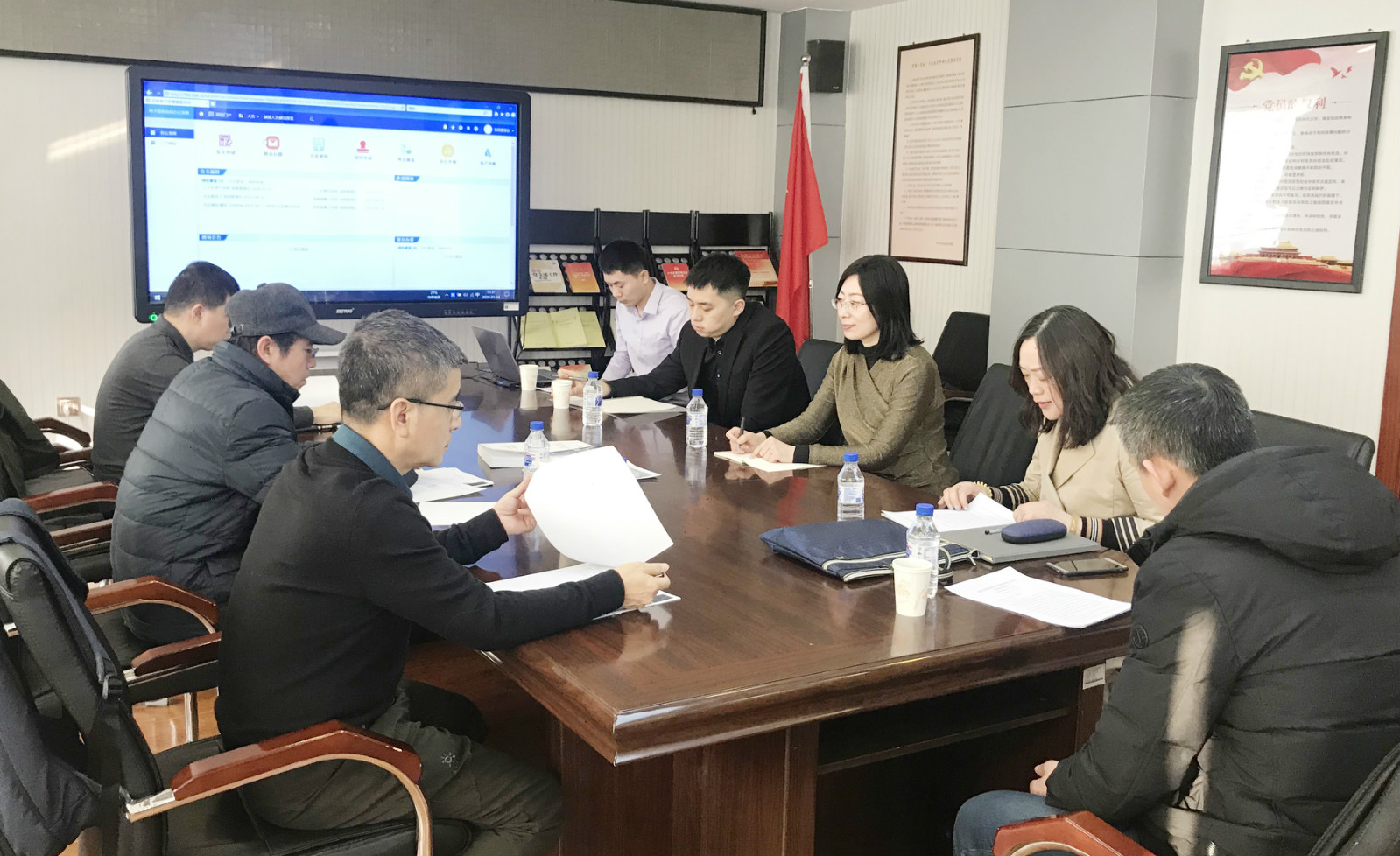 2020年12月14日,中心电子政务科与承建单位就国产化OA系统应用需求进行研究讨论。