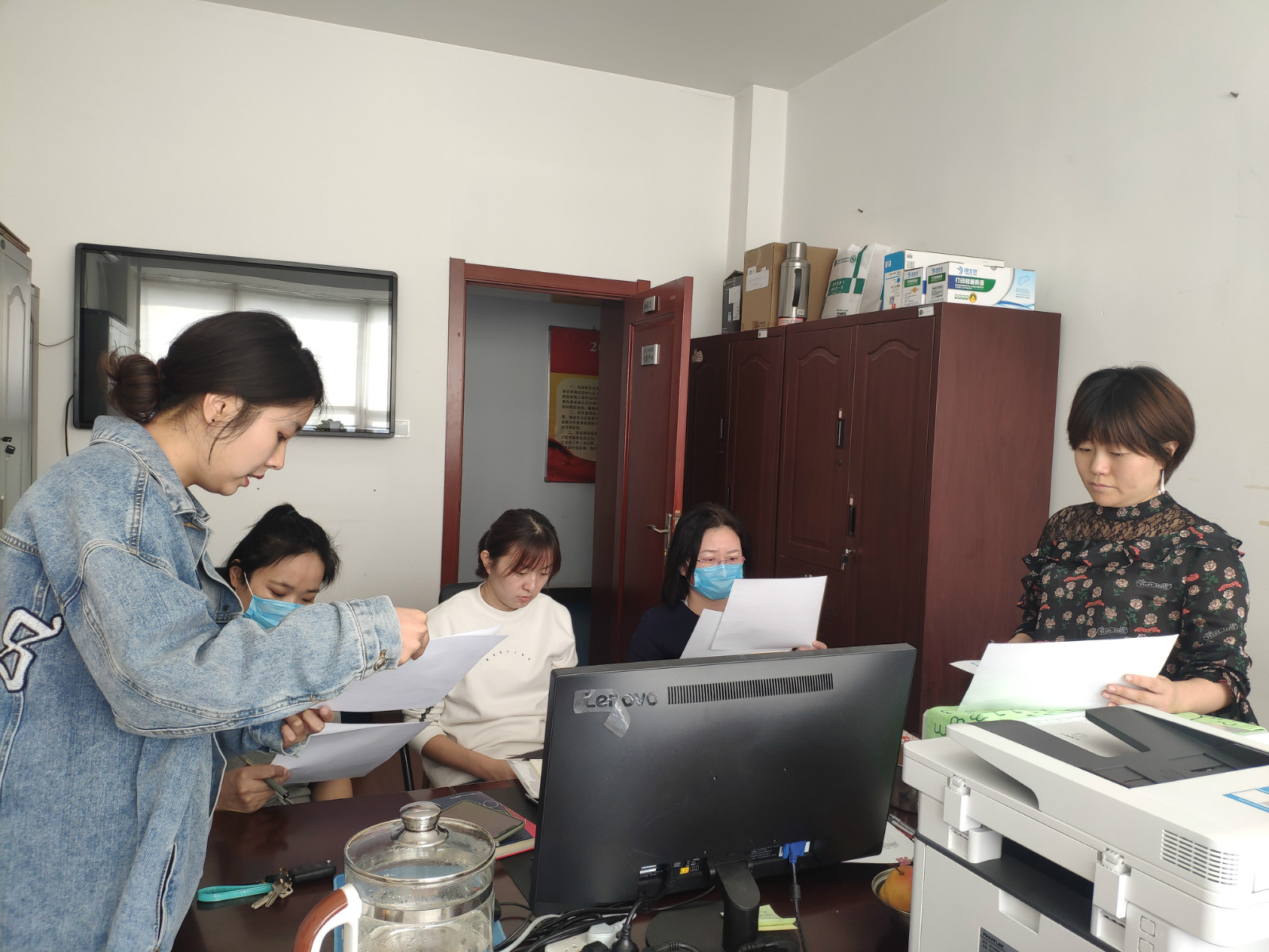 2020年9月29日,中心电子政务科与省卫生健康委办公室副主任杨跃跃等研究OA发文申请流程。