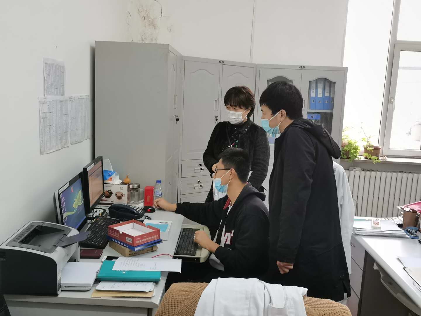 2020年2月4日,电子政务科工程师赵宜琳正在吉林省抗击新型冠状病毒肺炎指挥部安装调式OA系统,为网上办公提供技术保障。