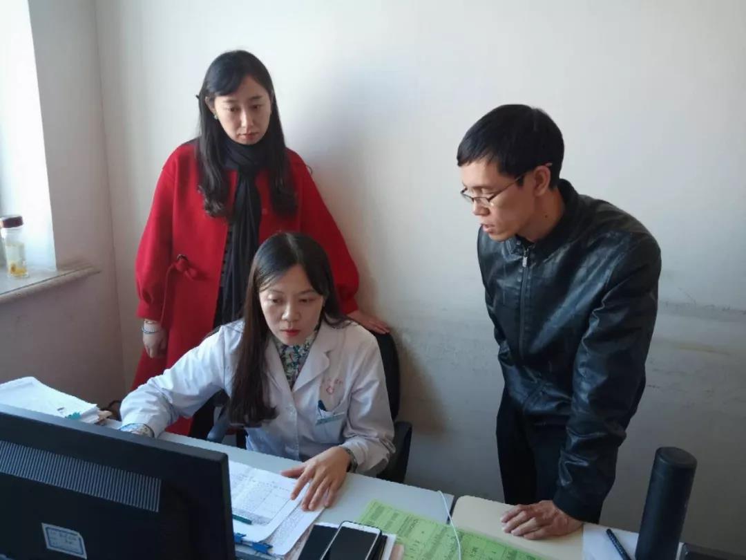 评估组陈伟在松原市中心医院检查网络直报人力表数据上报情况。