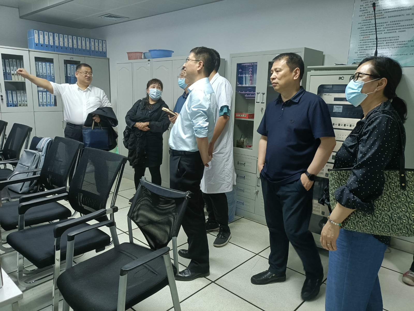 在观看吉林大学口腔医院数据中心演示后,吉林大学中日联谊医院信息中心主任张海龙代表文审专家组向医院领导汇报了文审中专家提出的改进建议,提出医院信息技术人员要加深对互联互通测评指标的理解,证明材料要更加准确反映达标项,并着重讲解了现场查验的流程和注意事项,门诊、检验科、医技科、住院病区、信息中心机房等,应做好的准备工作。