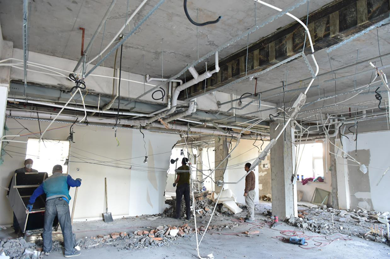 二是完成省全民健康数据中心机房建设工作。组织成立省全民健康数据中心机房建设专家组,召开机房建设方案研讨会,邀请专家组和驻委纪检监察组、委规划与信息处、委财务处查看现场并就数据中心机房建设方案进行研讨,进一步完善建设方案。组织省建筑科学研究设计院专家对机房承重进行检验鉴定。为了降低施工对原驻楼单位的影响,中心利用十一假日期间24小时施工,完成噪音较大、影响范围广的基础工程部分。在专家组的精心指导下,陆续完成了数据中心机房及电池间基础装修、消防设施安装调试、模块化机柜安装调试、展示大屏安装调试、动环监控系统安装调试等工作,整体建设项目于12月28日竣工。