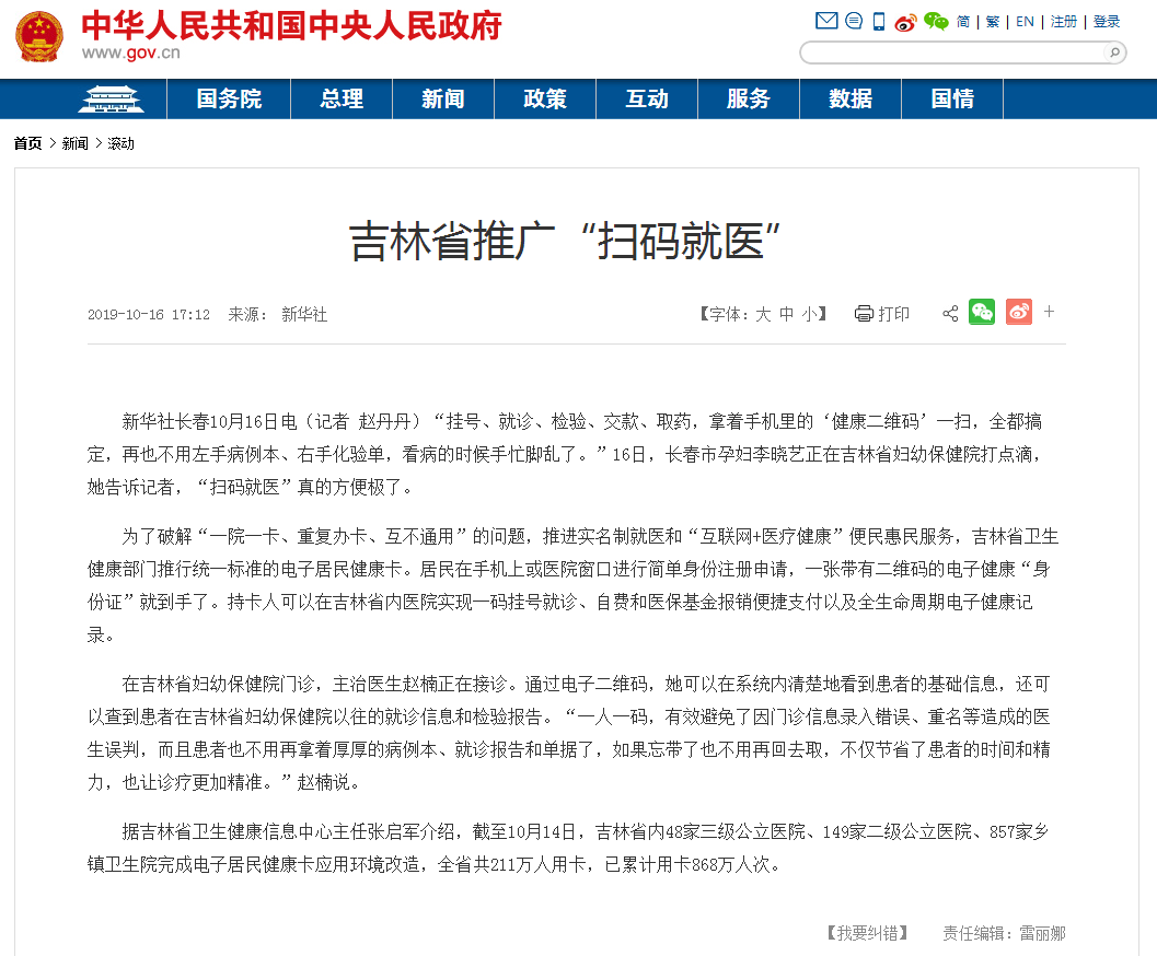 据吉林省卫生健康信息中心主任张启军介绍,截至10月14日,吉林省内48家三级公立医院、149家二级公立医院、857家乡镇卫生院完成电子居民健康卡应用环境改造,全省共211万人用卡,已累计用卡868万人次。