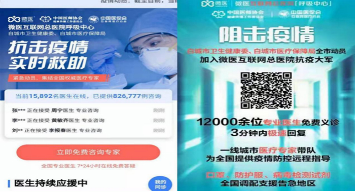 上图为白城卫生健康公众号中“互联网医院疫情救助平台”的链接。