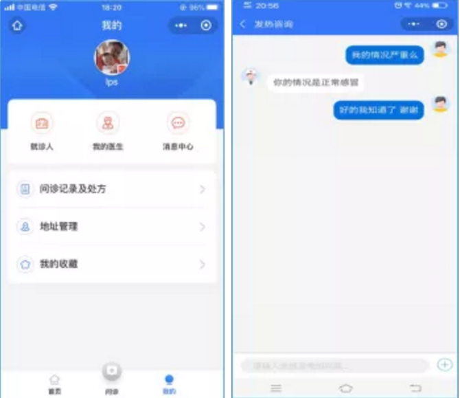 点击【我的】→【问诊记录及处方】,查看医生的回复内容,并进行进一步沟通。