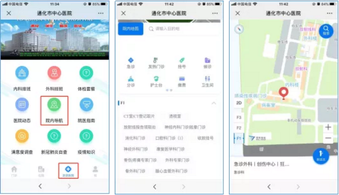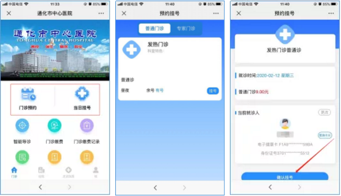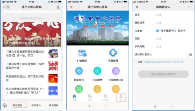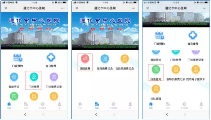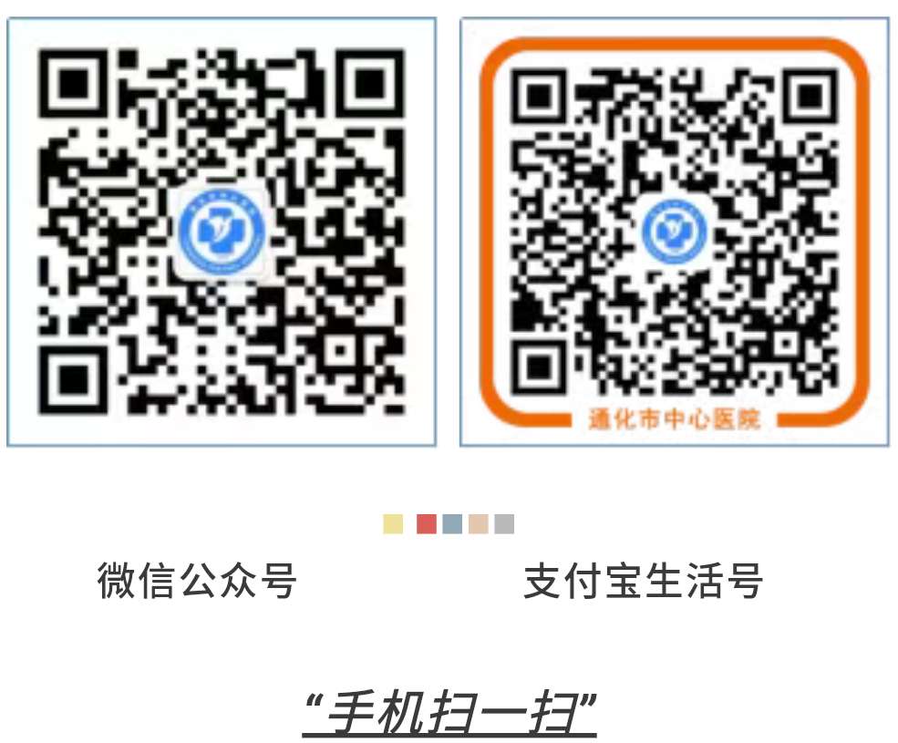 可关注通化市中心医院官方微信公众号和支付宝生活号,线上轻松预约挂号、院内导航、门诊缴费、住院预缴、查报告等功能。