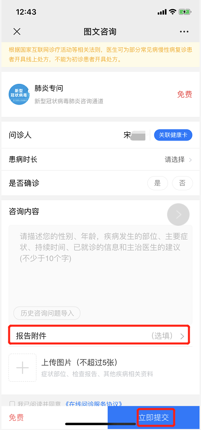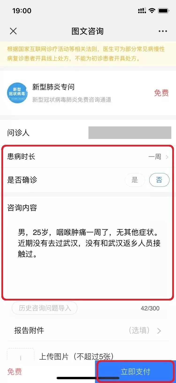 填写自己相关信息/病情描述-【立即支付(免费)】。