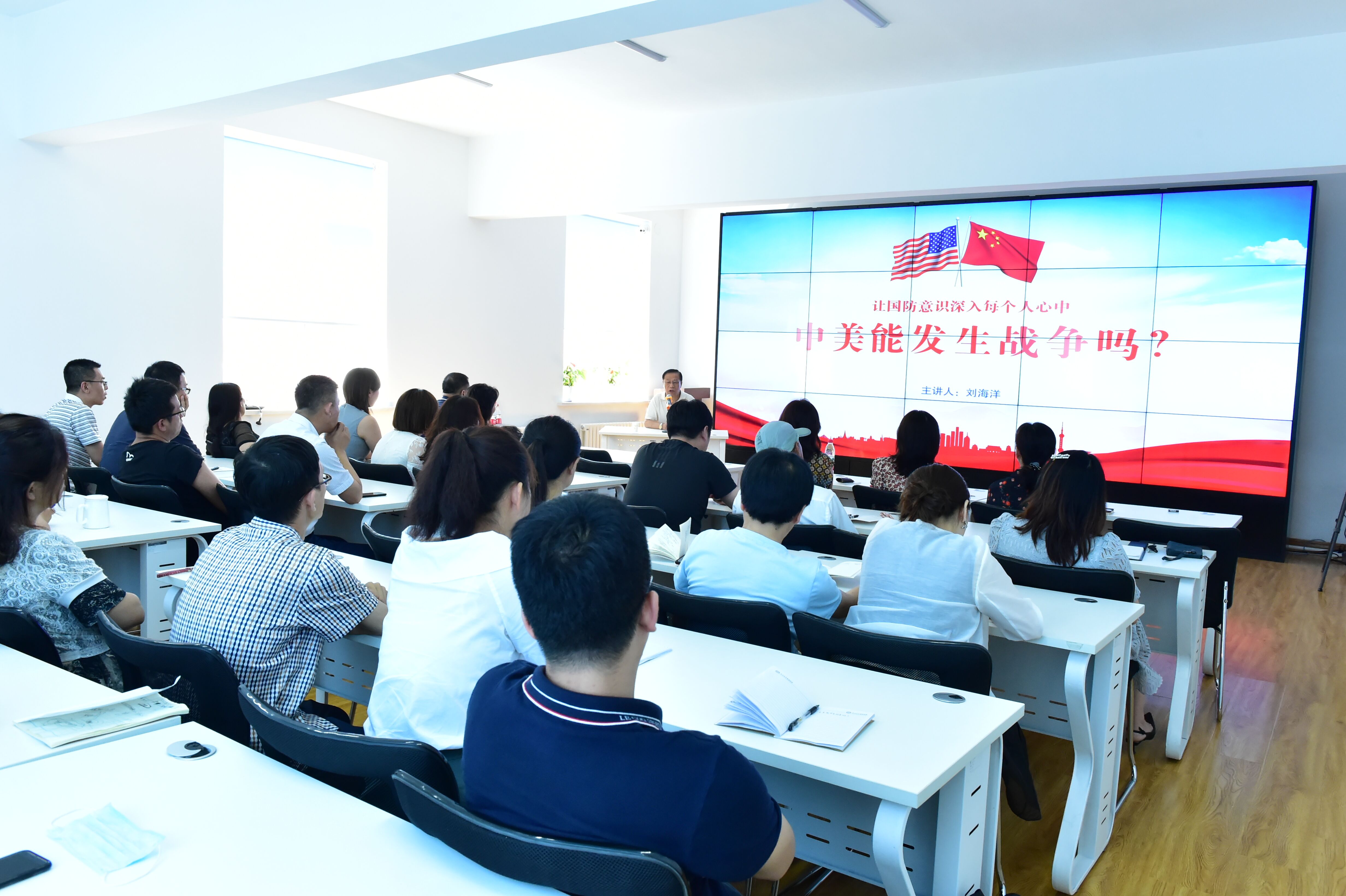 为学习贯彻落实习近平总书记在视察空军航空大学时的重要讲话精神,庆祝“八一”建军节的到来,增强全民国防意识,7月30日,吉林省卫生健康信息中心邀请国防教育研究专家刘海洋以《中美能发生战争吗》为主题,为中心全体党员干部职工作国防教育专题辅导。