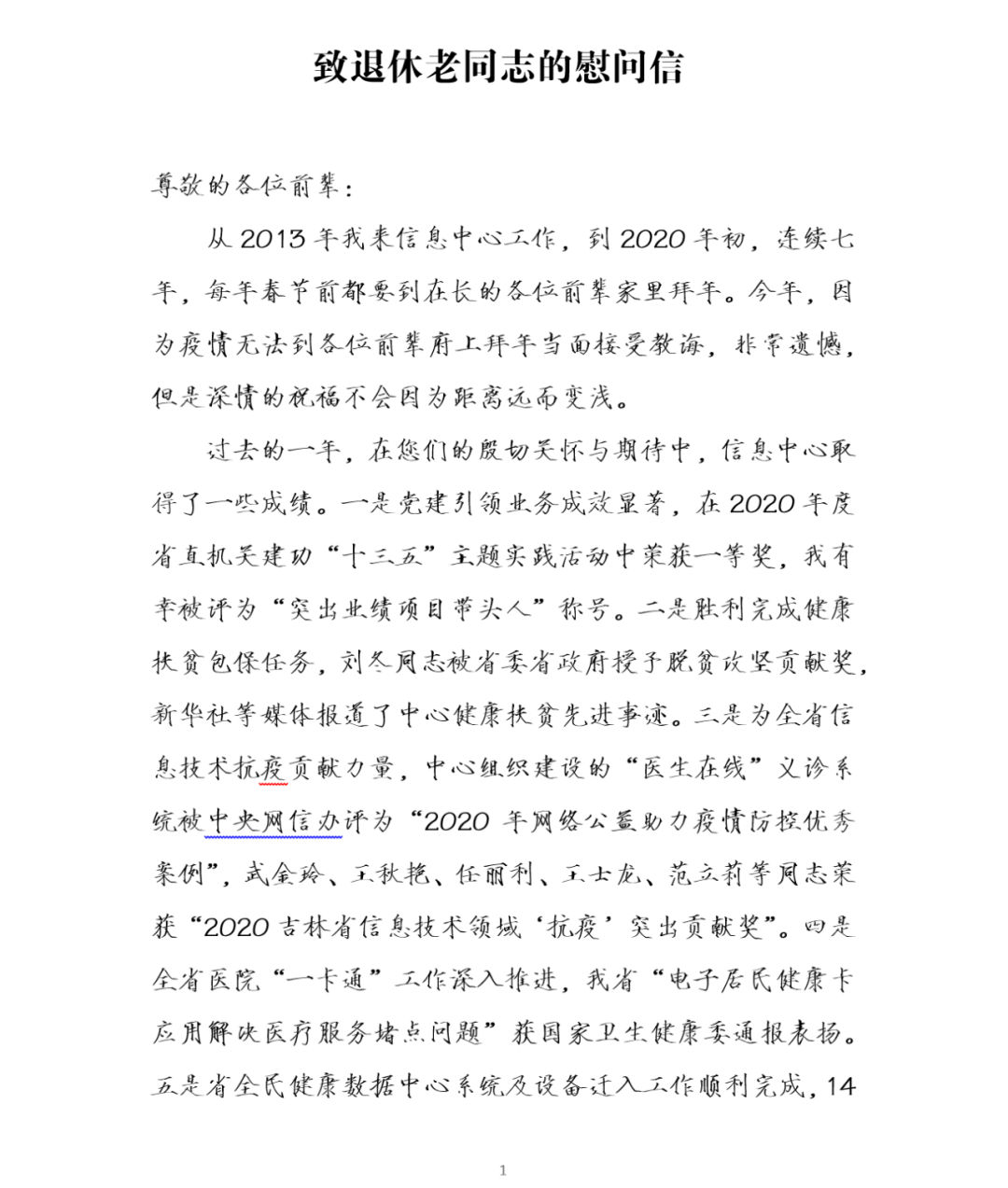 一一读致退休老同志慰问信有感