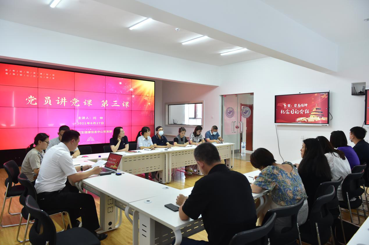 为了纪念中国人民抗日战争胜利76周年,2021年8月27日,省卫生健康信息中心党员闫帅在“党员讲党课”活动中,以《抗日战争胜利纪念日》为题讲授党课,并当堂就授课知识点进行了考试答题。组织委员武金玲主持学习活动。