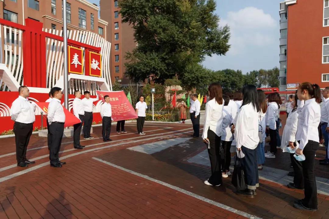参观结束后,省卫生健康信息中心党支部书记、主任张启军带领全体党员在小区广场三代旗杆下面向党旗,高举右手,庄严宣誓。