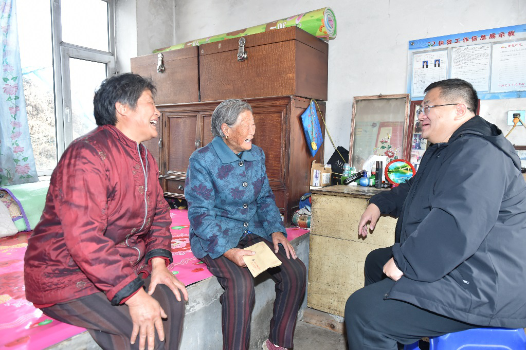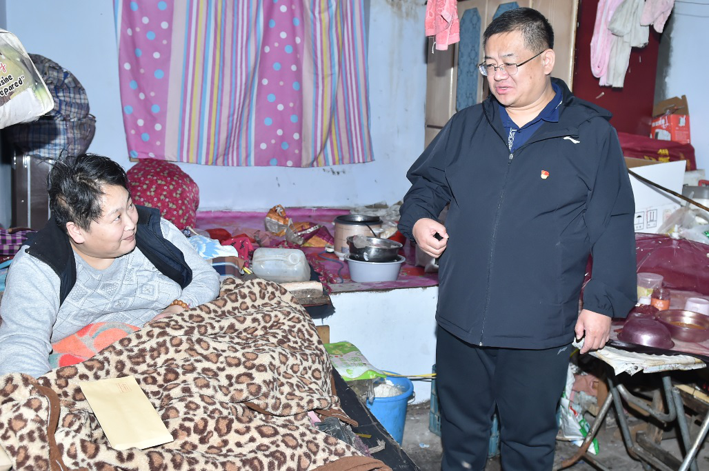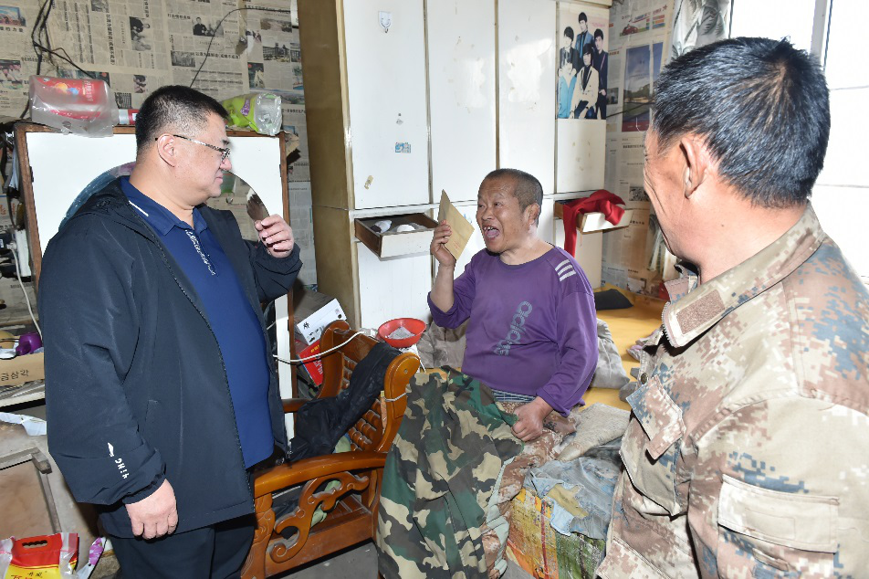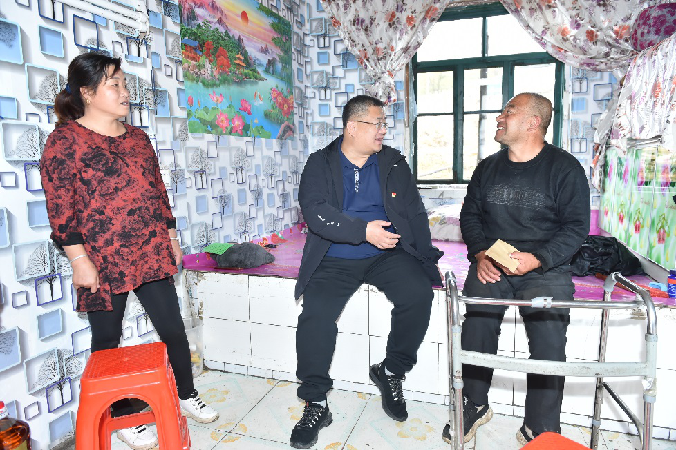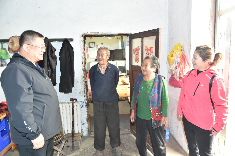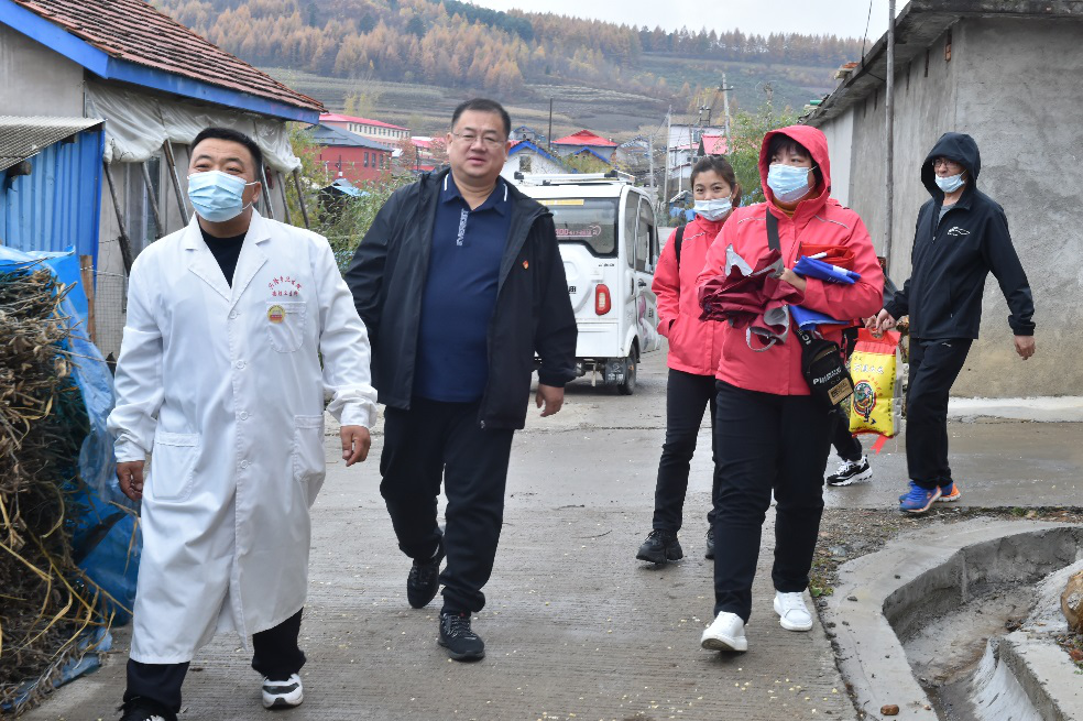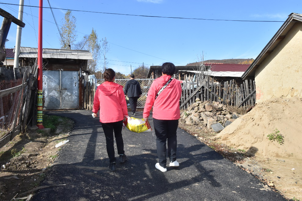 赵大爷看到信息中心这些老朋友非常高兴,立即从炕上下来嘘寒问暖,大娘也从邻居家听说后赶回来。大家在一起唠着今年地里的收成,大娘说今天开始下霜了,老头上午刚刚把地里的大白菜都收回来。信息中心石丽丽说,马上入冬天儿冷啦,给您二老送两床被子。