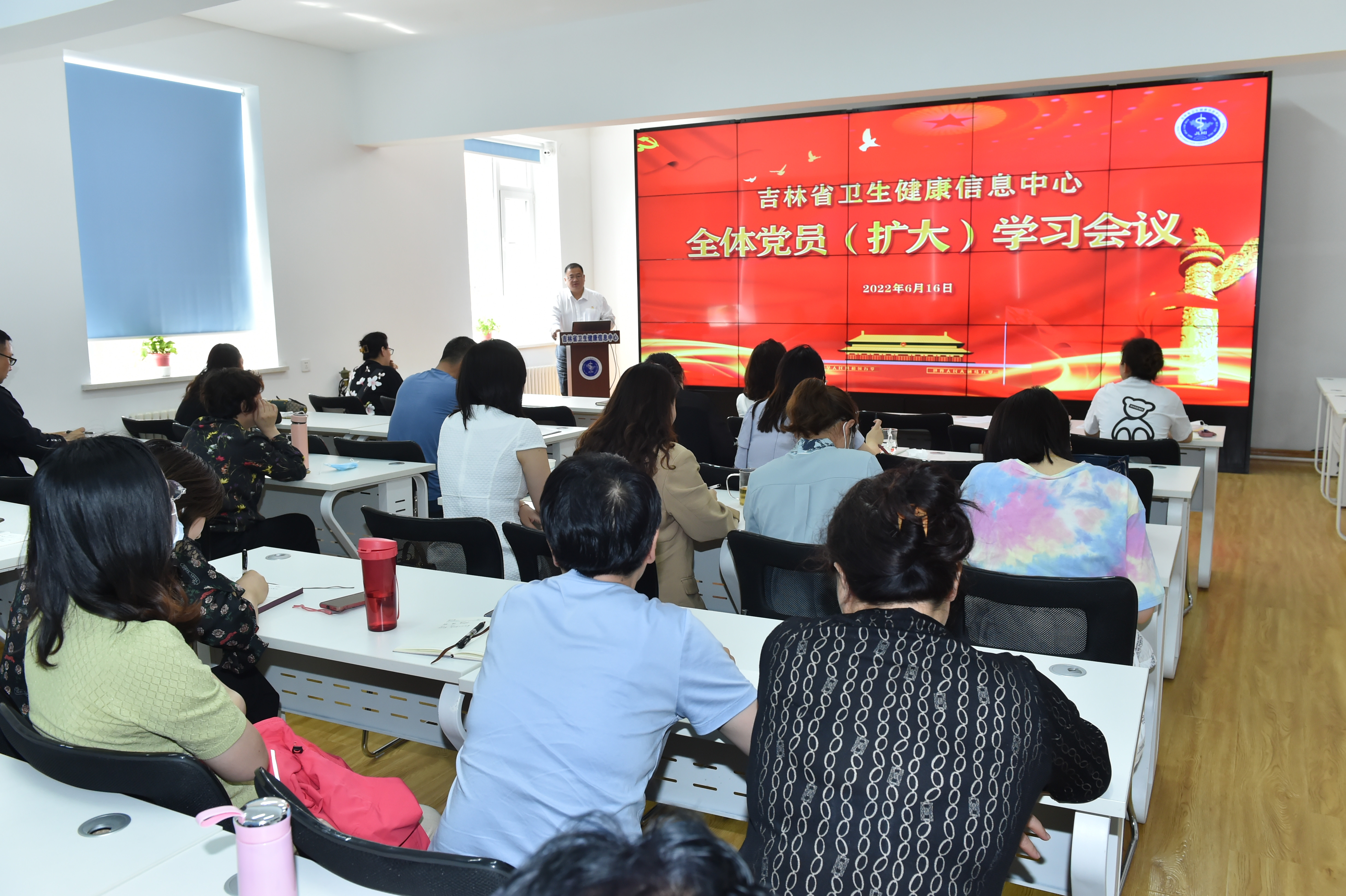 2022年6月16日,吉林省卫生健康信息中心召开全体党员(扩大)学习会议,传达学习2022年省卫生健康委、省中医药管理局机关党的建设暨党风廉政建设工作会议(以案促改工作会议)精神。