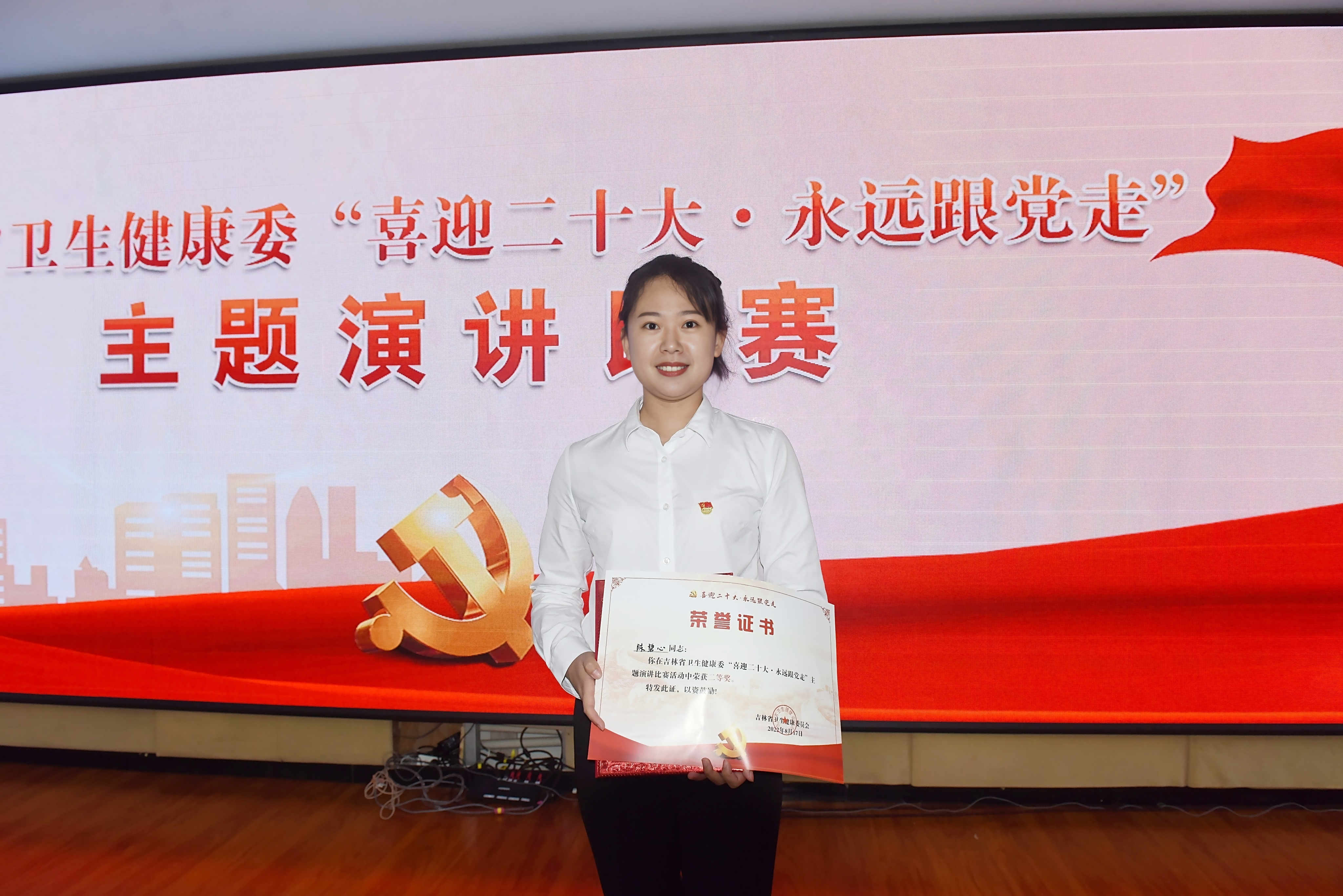 2022年8月17日,吉林省卫生健康委举行“喜迎二十大·永远跟党走”主题演讲比赛(决赛),省卫生健康信息中心数据管理科青年党员陈碧心以总成绩471.5分荣获二等奖。