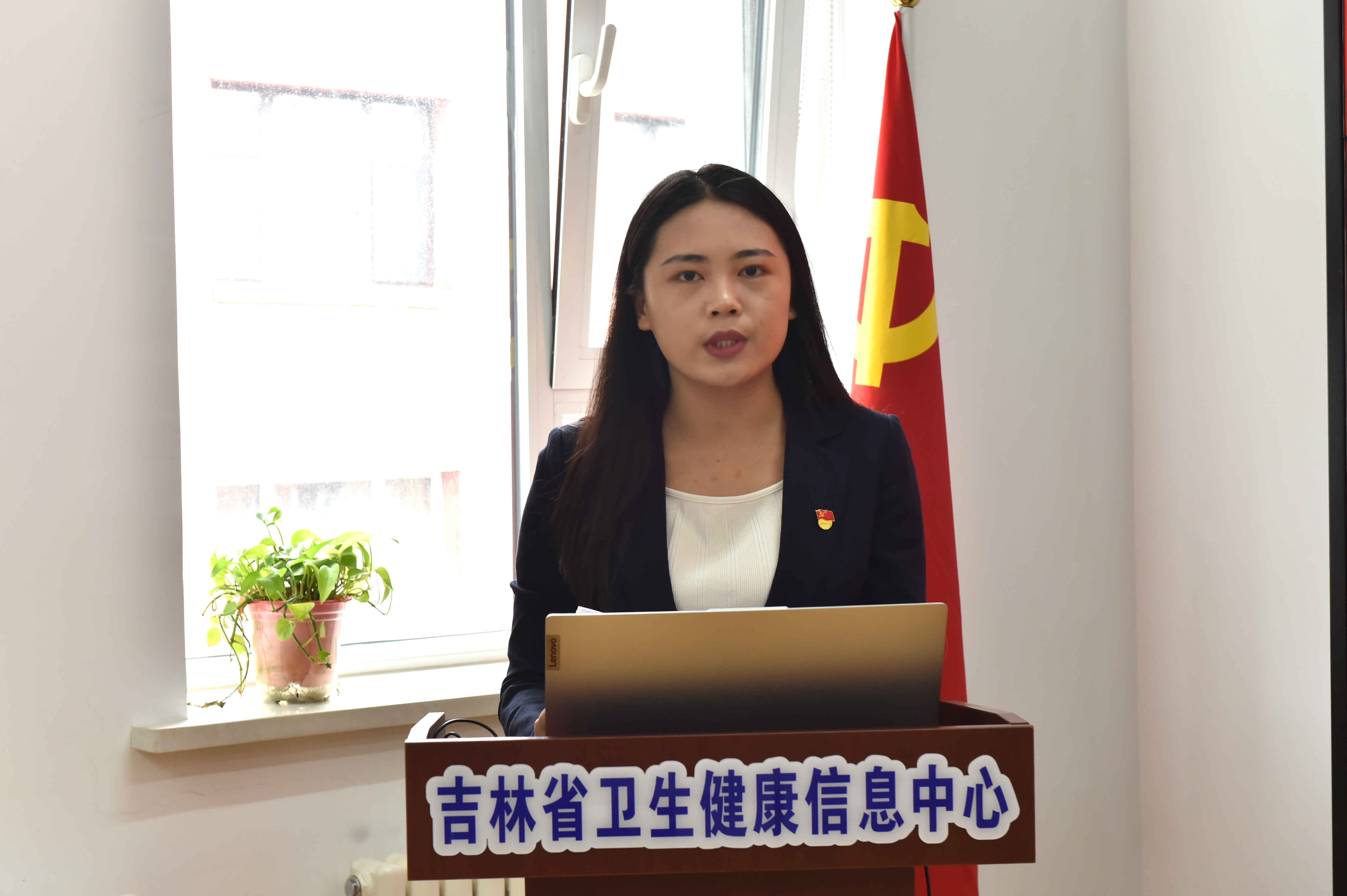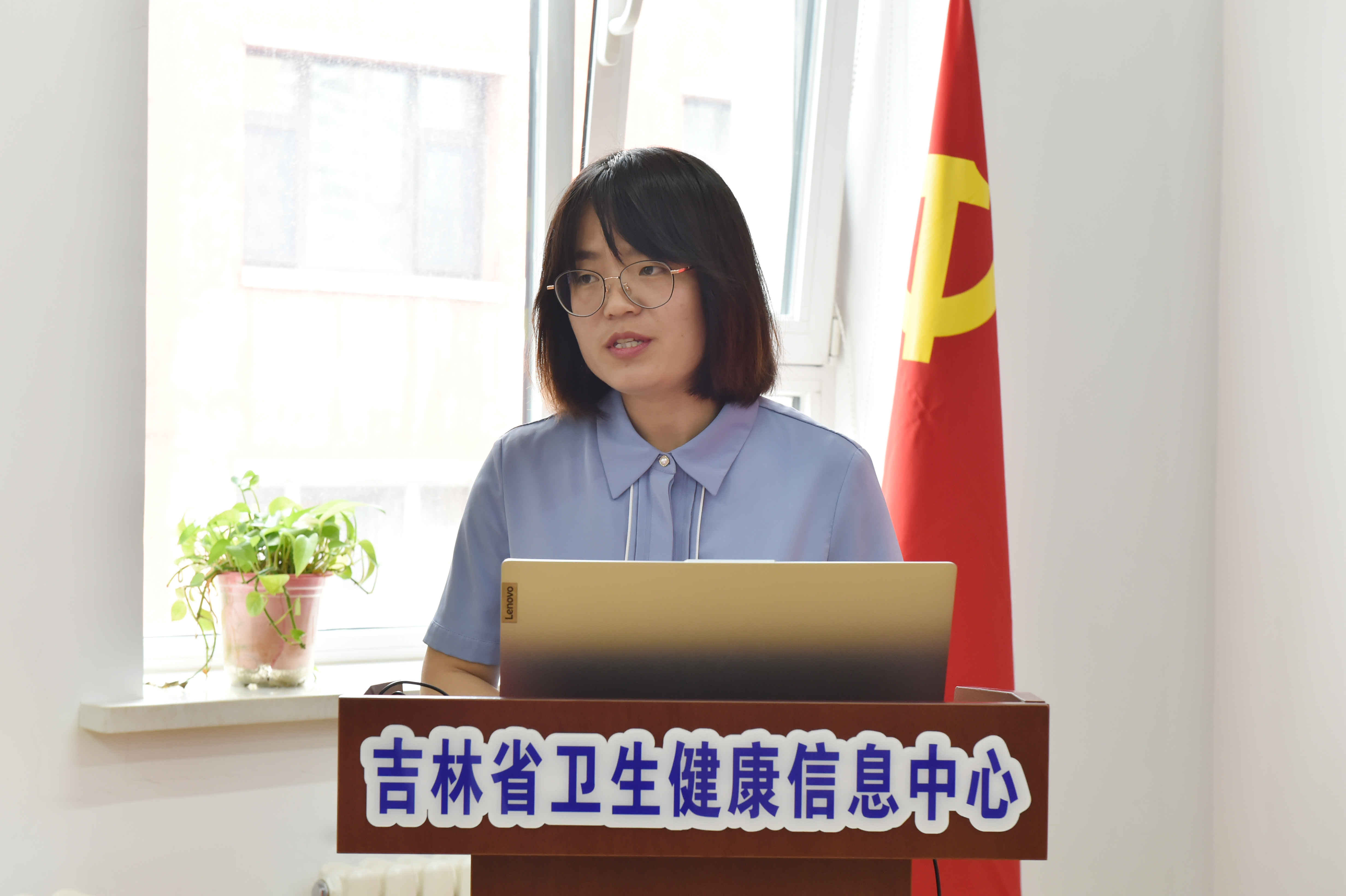 电子政务科杨云冬汇报了自己学习《党的二十大报告》心得体会。作为一名卫生健康信息化工作者,要立足岗位职责,积极主动作为,把党的二十大精神落实到卫生健康信息化各项工作中,提升自身数字素养,强化数字应用能力,持续增强以数字化思维和数字化手段开展工作的本领,为数字吉林、健康吉林建设贡献更大力量。
