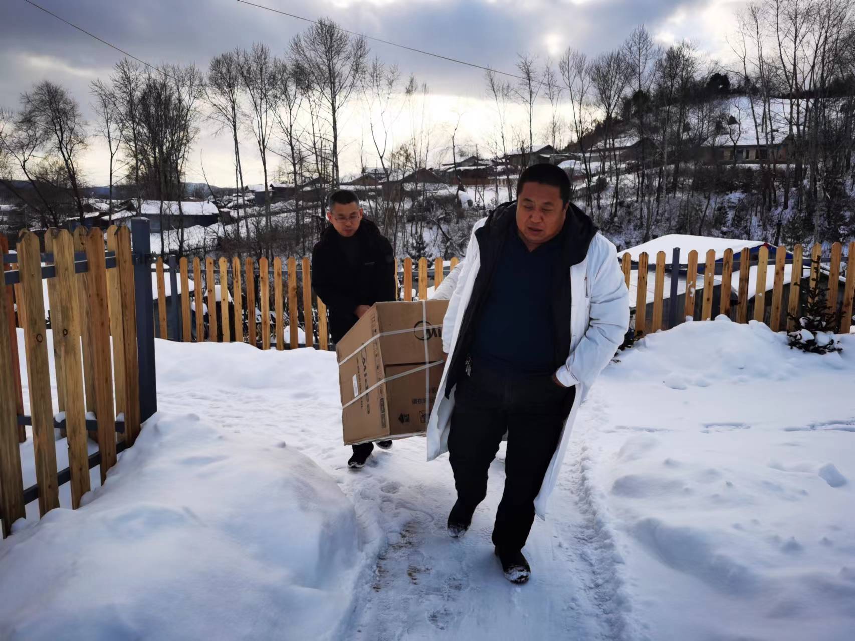 原来,抚松县抚松镇鸡冠砬子村大军,2010年因为打松塔从树上摔下来,双腿摔断,腰椎骨折,高位截瘫,十几年躺在炕上。2021年信息中心发起捐助活动,吉林智成汽贸集团张国华总经理和长春二中孟千会老师常年给他邮寄治疗褥疮药品、洗消用品和尿不湿,缓解了大军很大的经济压力。但是因为村里各个自然屯之间相距很远,快递只送到村委会,每次都是吴启祥大夫骑着三轮车送到大军家的自然屯。