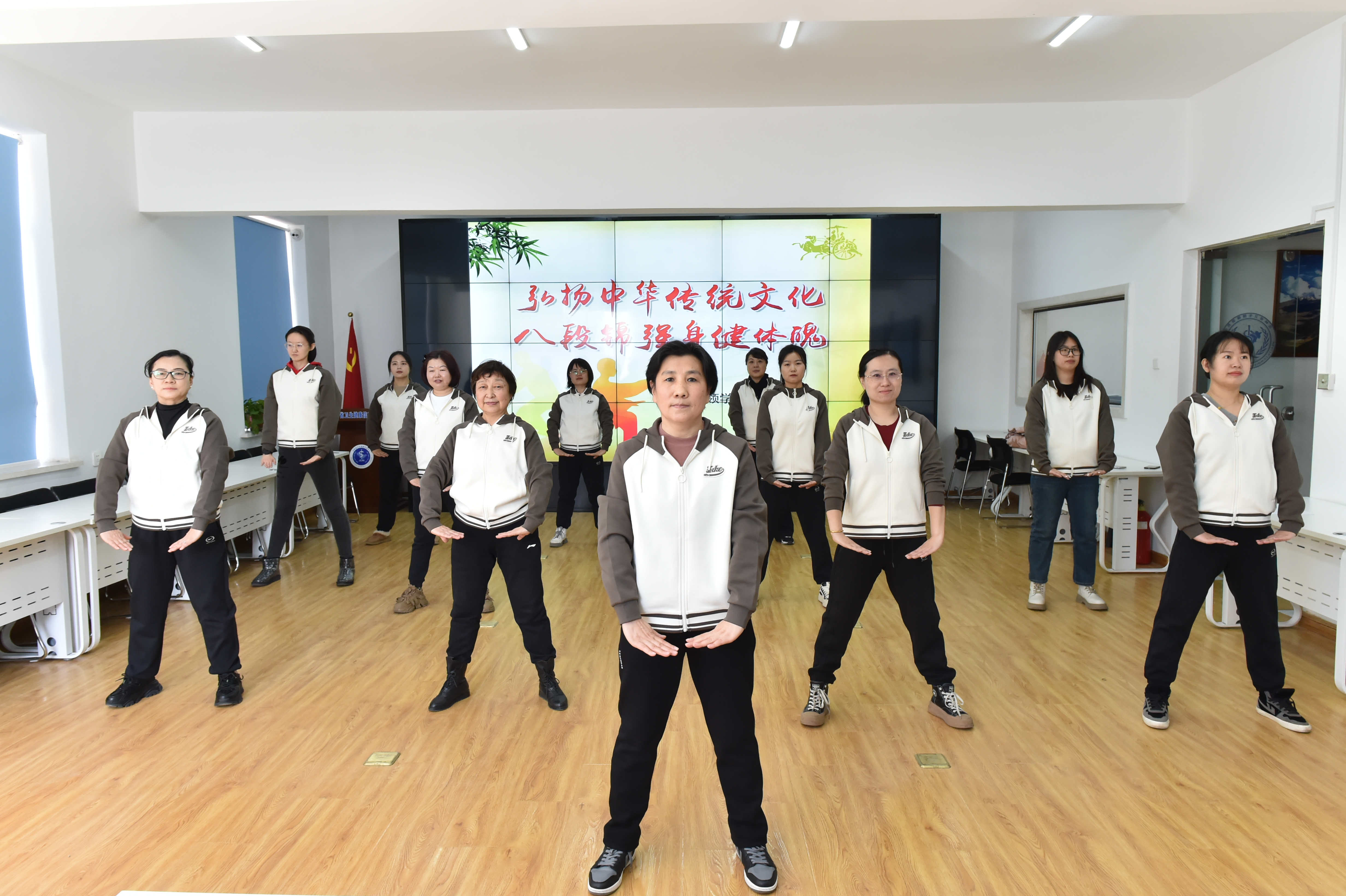 八段锦是起源于北宋的一项中医健身运动,此功法分为八段,每段一个动作,故名为“八段锦”,是一种形体运动与呼吸运动相结合的独特健身法,通过宣畅气血、舒展筋络而达到运动养生的目的。活动过程中,数据管理科副研究员王向前耐心地将八段锦的步法和动作进行了逐一讲解和示范,帮助女职工掌握基本要领,领略着八段锦强身健体的独特魅力,为营造全民参与、快乐健身的新时尚氛围奠定了基础。