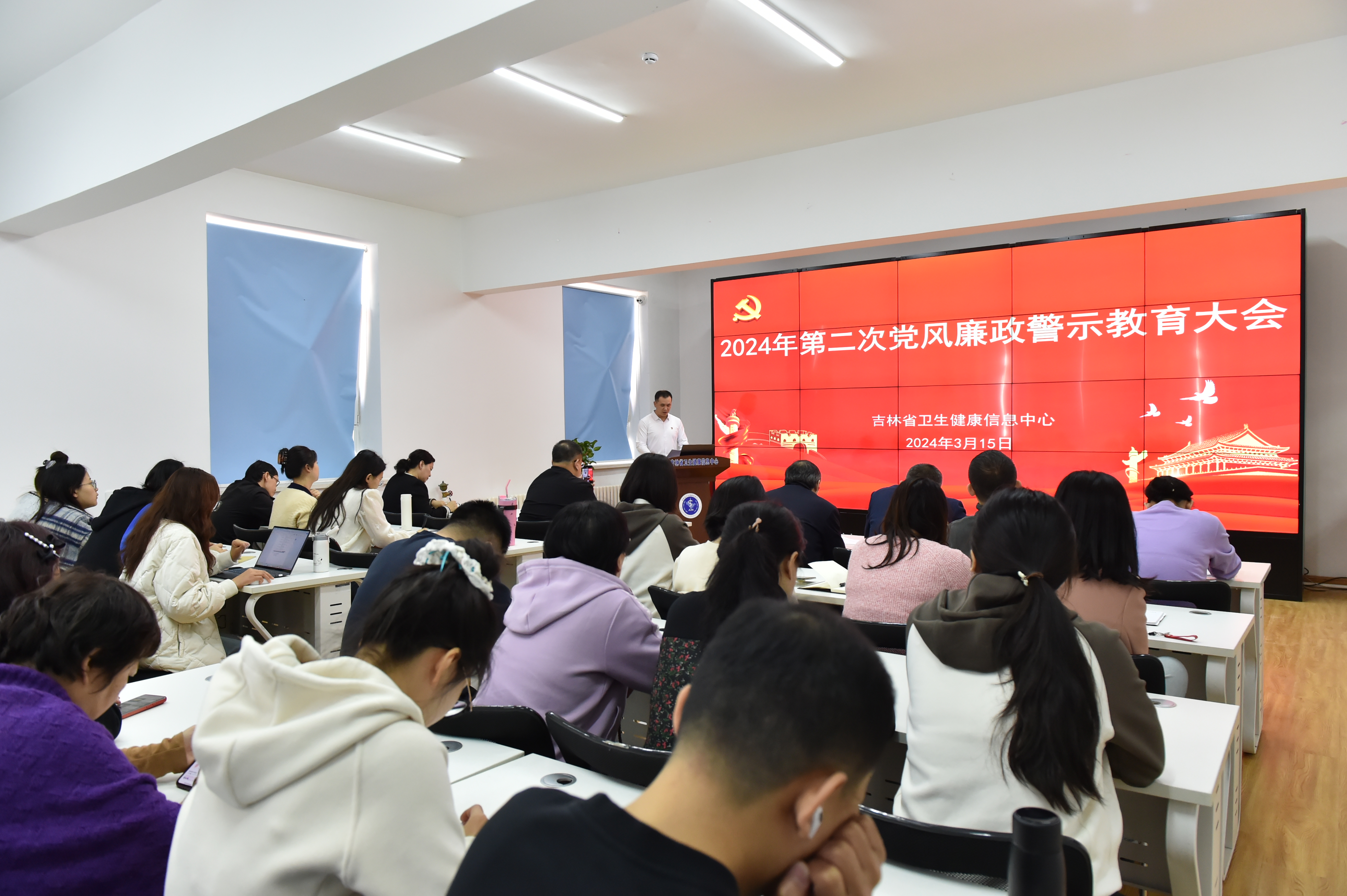 3月15日,省卫生健康信息中心召开2024年第二次党风廉政警示教育大会。纪检员闫帅传达《深入学习贯彻习近平总书记关于党的自我革命的重要思想 以纪检监察工作高质量发展服务保障吉林全面振兴率先实现新突破——在中共吉林省第十二届纪律检查委员会第三次全体会议上的工作报告》;书记、主任张启军在会上讲话,部署学习中共吉林省第十二届纪律检查委员会第三次全体会议精神和近期党风廉政工作安排;全体党员干部职工观看廉政教育专题片《持续发力 纵深推进》第二集《政治监督保障》。副主任、纪检委员安东升主持会议。