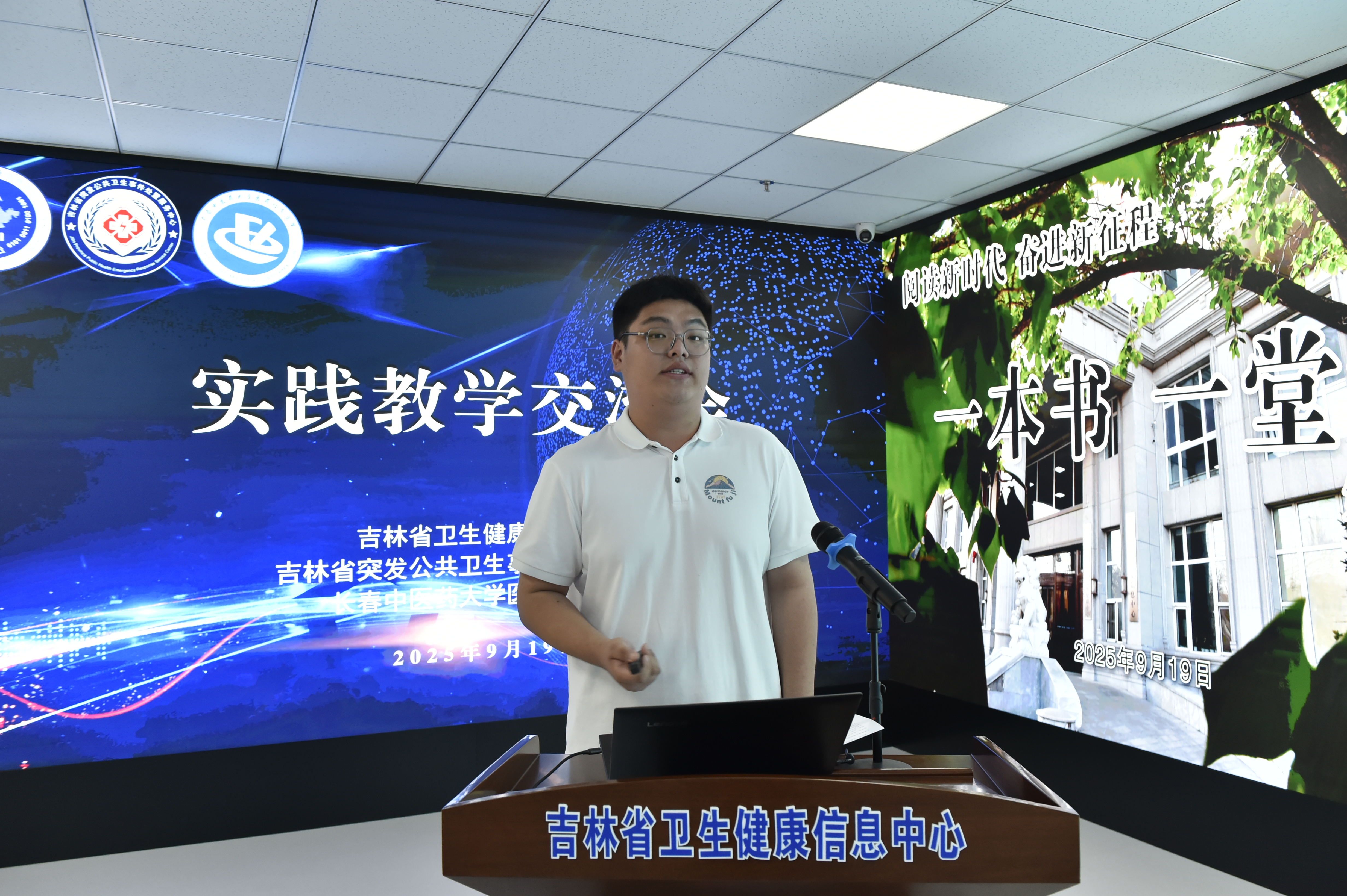 2025年9月19日,长春中医药大学医药信息学院院长邹元君、党总支书记王喜臣到省全民健康数据中心开展2022级实习生中期实践教学交流。省卫生健康信息中心、省突发公共卫生事件处置服务中心全体干部职工参会。