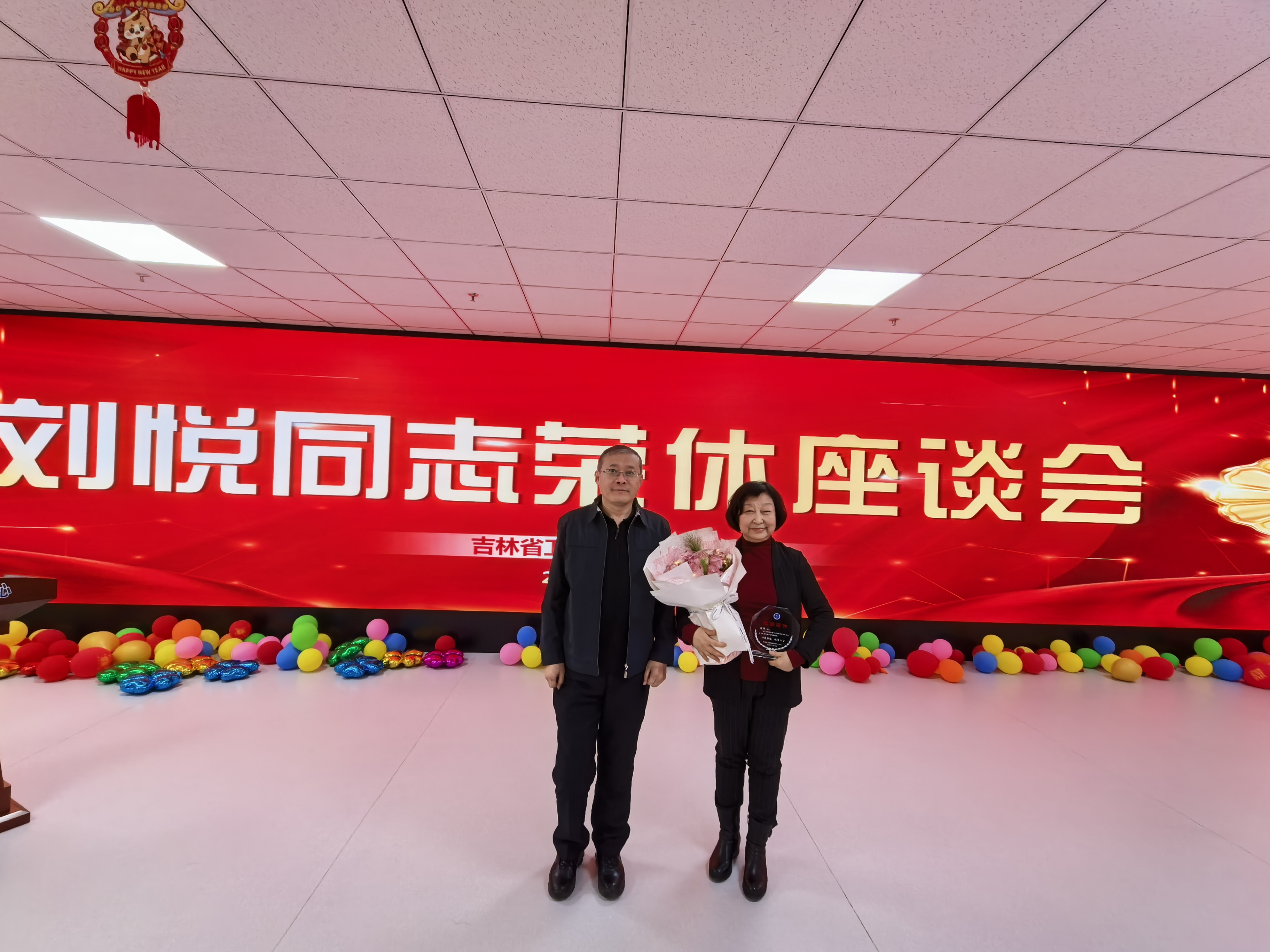 副主任安东升为刘悦颁发荣休纪念牌并献花。