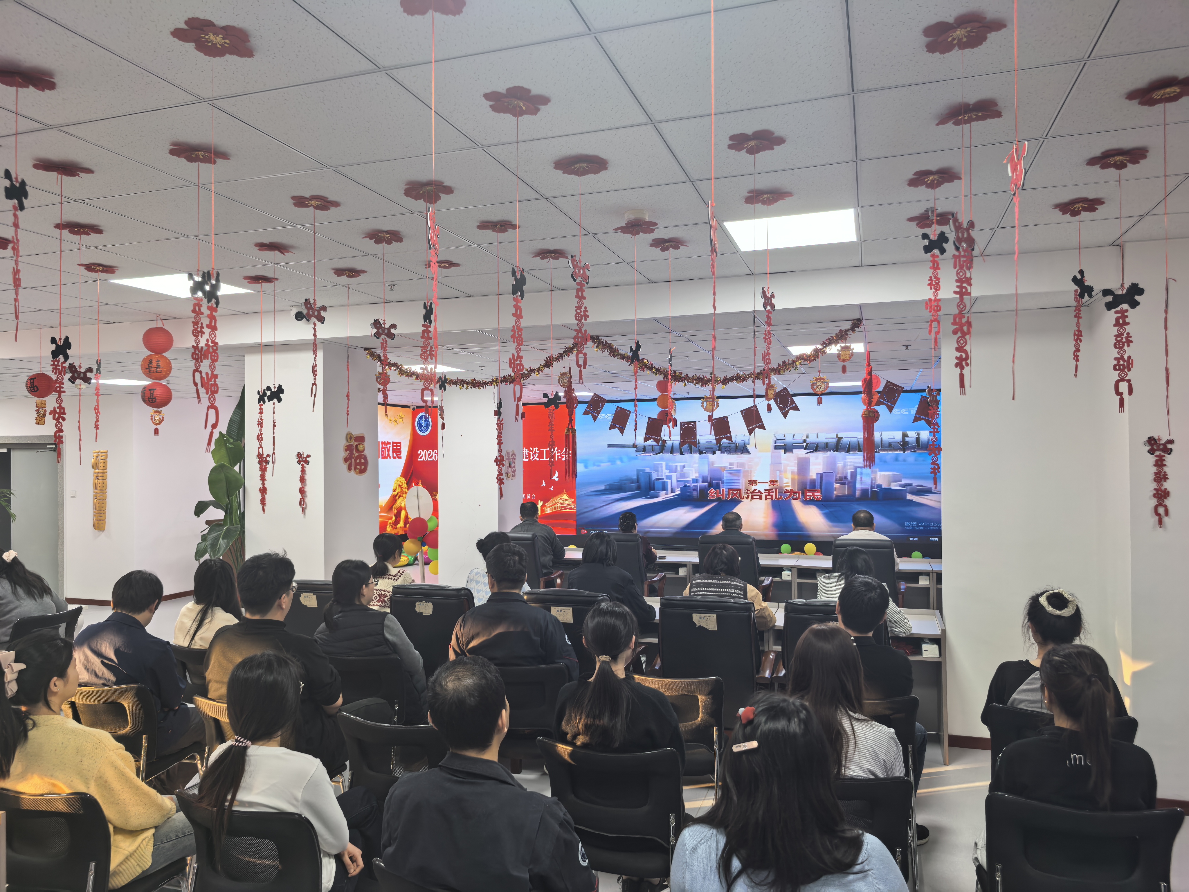 随后,全体党员干部职工观看警示教育片《一步不停歇半步不退让》第一集《纠风治乱为民》。专题片聚焦群众身边腐败和作风问题,通过真实案例还原、当事人忏悔反思等形式,深刻展现了少数党员干部在权力诱惑面前初心失守、防线溃口,从作风松懈到腐化堕落的蜕变轨迹,精准戳中了“四风”问题与腐败现象相互滋生的核心症结。片中涉及的违规利益勾兑、政绩观扭曲、漠视群众利益等典型问题,尤其是与民生领域密切相关的违纪违法案例,让在场每一位党员干部职工都接受了一次深刻的思想洗礼和精神淬炼。