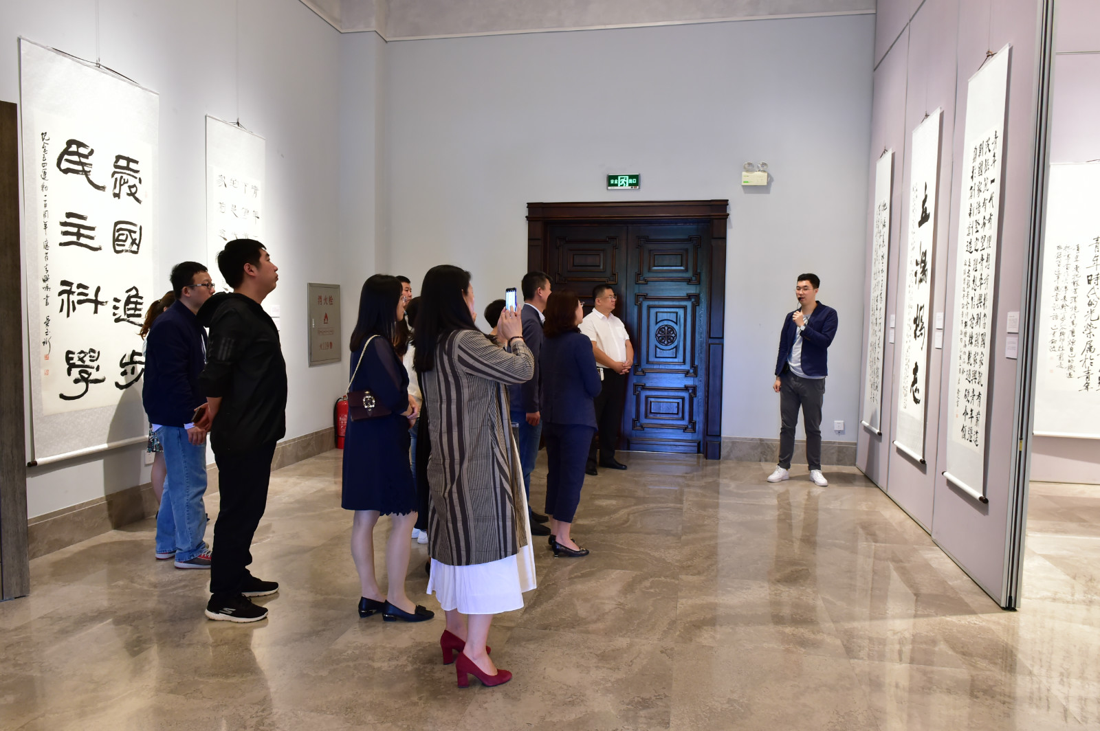 整个主题展览分为书法展、图片展和实物展三个部分。书法展展出了由青年书法家创作的以习近平总书记关于青年工作的重要论述为主要内容的近百幅书法作品。凝聚在党旗下的新时代吉林青年书法家用一幅幅书法作品,展现出新时代吉林青年的时代风采。