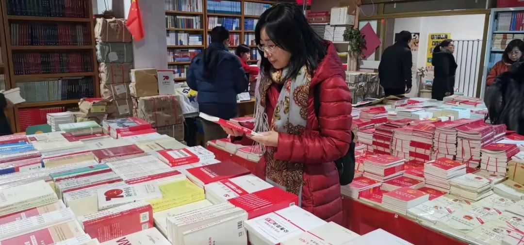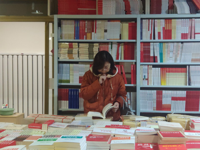 在书店,老党员于丽莎说,今天买书跟过年似的,高兴!大家徜徉在墨香书海之中,流连忘返,从上午九点半一直挑选到下午二点半。组织委员武金玲说:同志们都说这个小年过得非常有意义,比吃饺子都高兴。