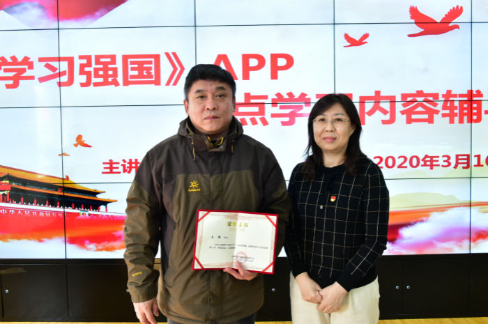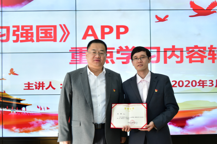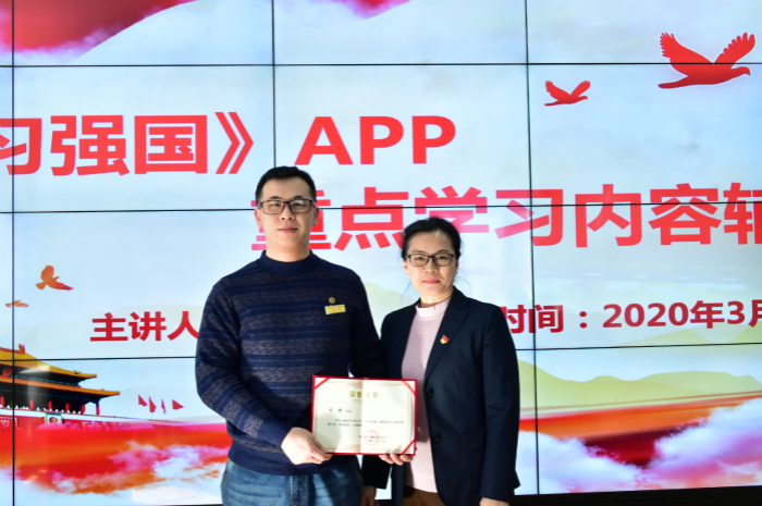 会议表彰了在2019年度中心“学习强国”平台上学习成绩突出的前三名同志,他们是数据管理科陈伟、党务人事科王强、网络安全科闫帅。中心党支部书记张启军、副书记于丽莎、组织委员武金玲分别为三名学习段位较高的同志颁发荣誉证书。目前,“学习强国”共分十级段位,分别是,一级段位:一心一意;二级段位:再接再厉;三级段位:三省吾身;四级段位:名扬四海;五级段位:学富五车;六级段位:六韬三略;七级段位:七步才华;八级段位:才高八斗;九级段位:九天揽月;十级段位:十年磨剑。