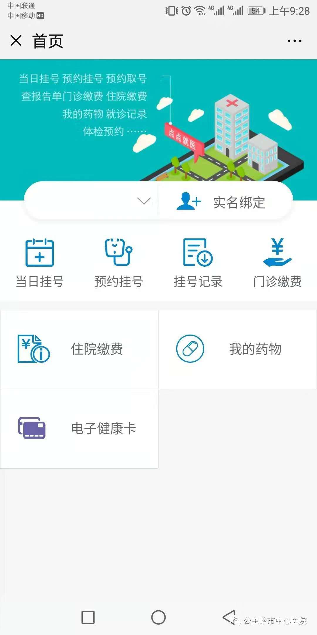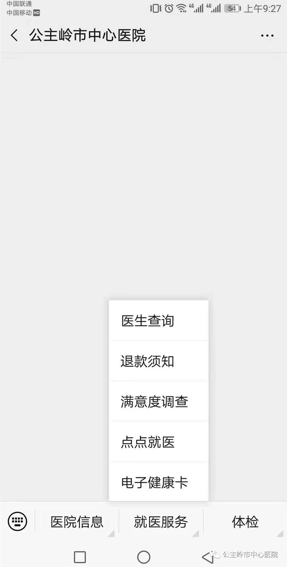 1、方式一:在微信中搜索公众号【公主岭市中心医院】,点击关注进入即可。