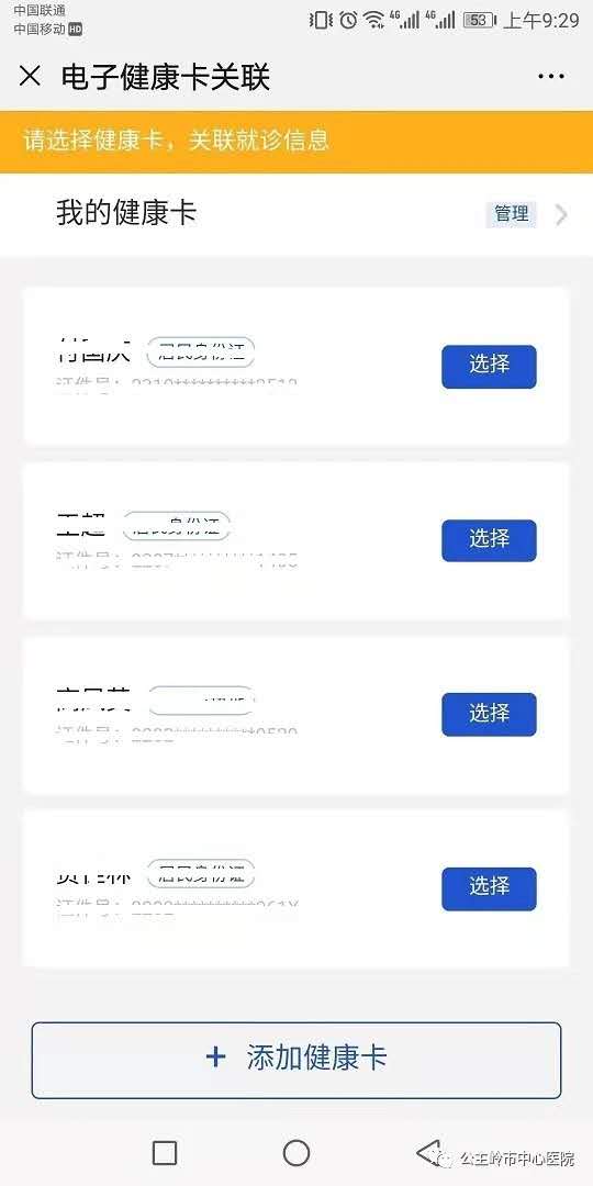 ①医院实行“实名制”就诊,使用手机挂号、缴费时,请先添加电子健康卡。