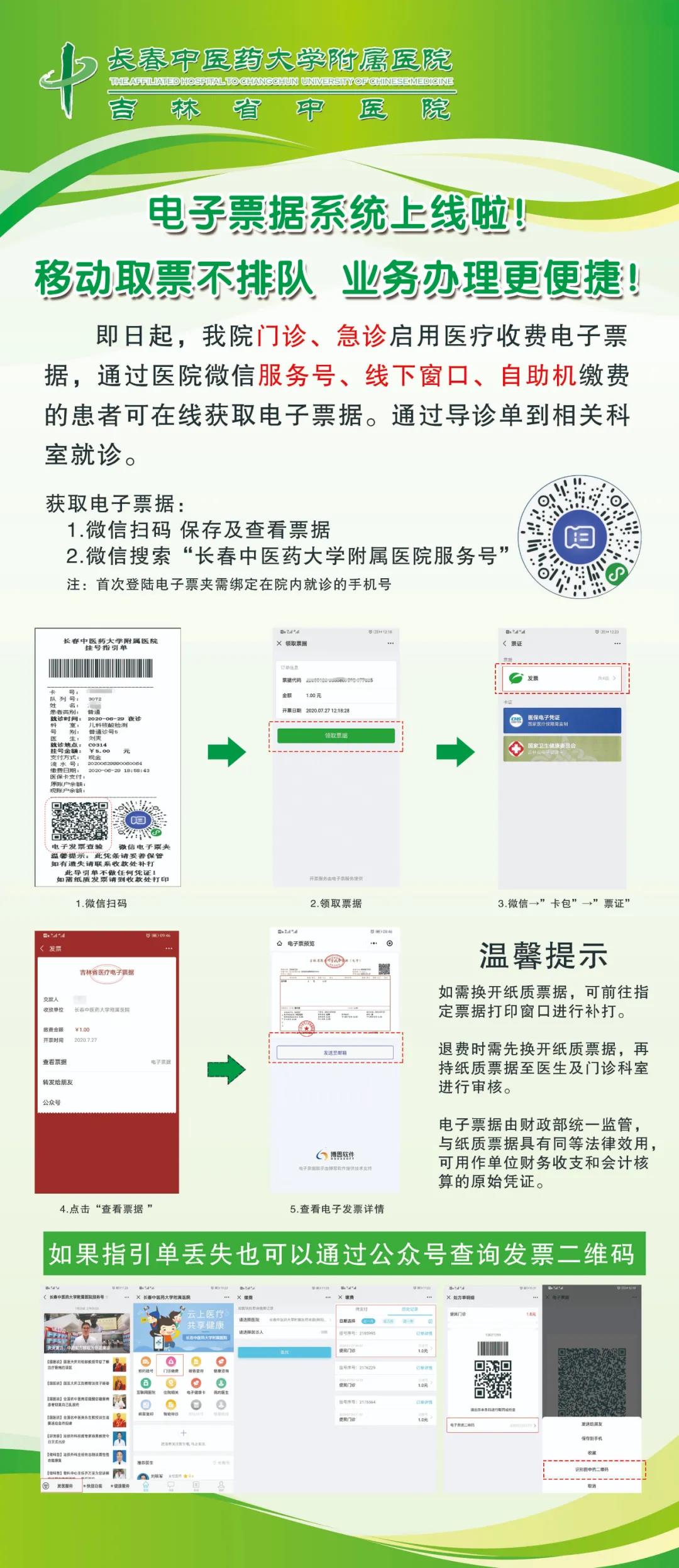 长春中医药大学附属医院全面应用医疗收费电子票据后,为吉林省全面推行医疗收费电子票据管理改革树立了典范,为打造智慧医院做出了表率,为提升便民服务水平树立了标杆。