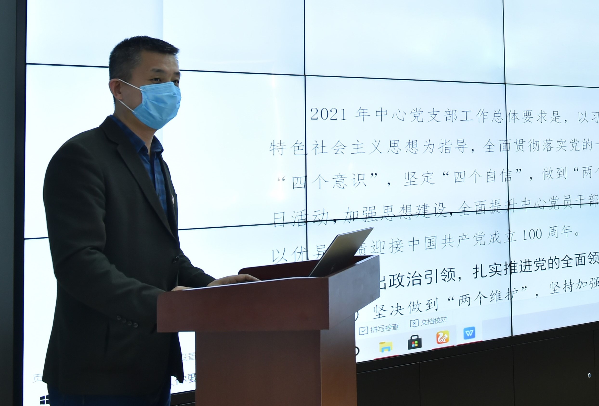 中心工会主席、党务人事科科长张文生结合会议精神,从加强政治建设、思想建设、组织建设、党风廉政建设、意识形态建设及做好人事工作等方面汇报2021年工作思路。