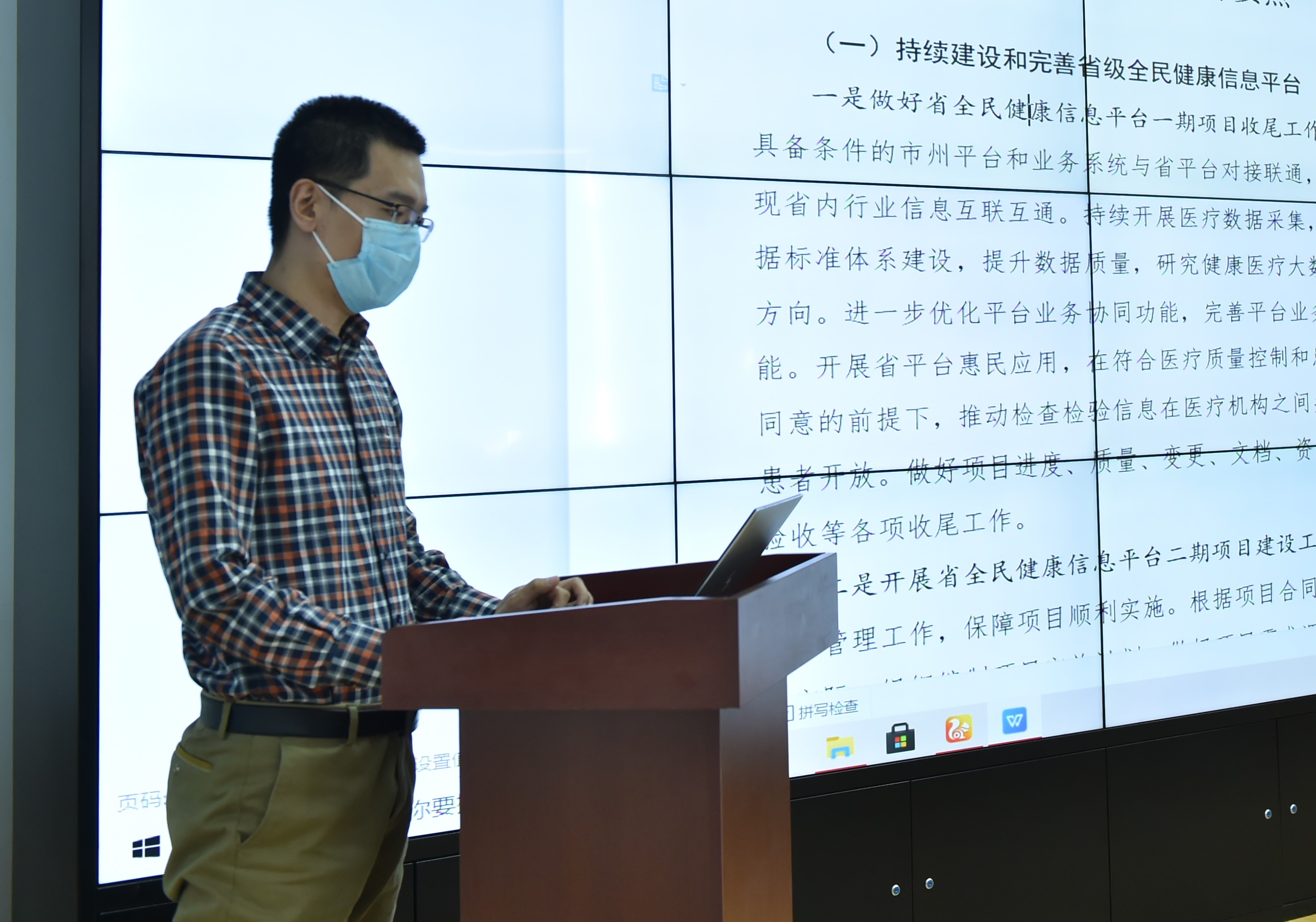 网络安全科副科长王士龙结合会议精神,从持续建设和完善省级全民健康信息平台、加强数据中心运维管理、提高网络安全服务水平,保障卫生健康信息系统安全等方面汇报2021年工作思路。