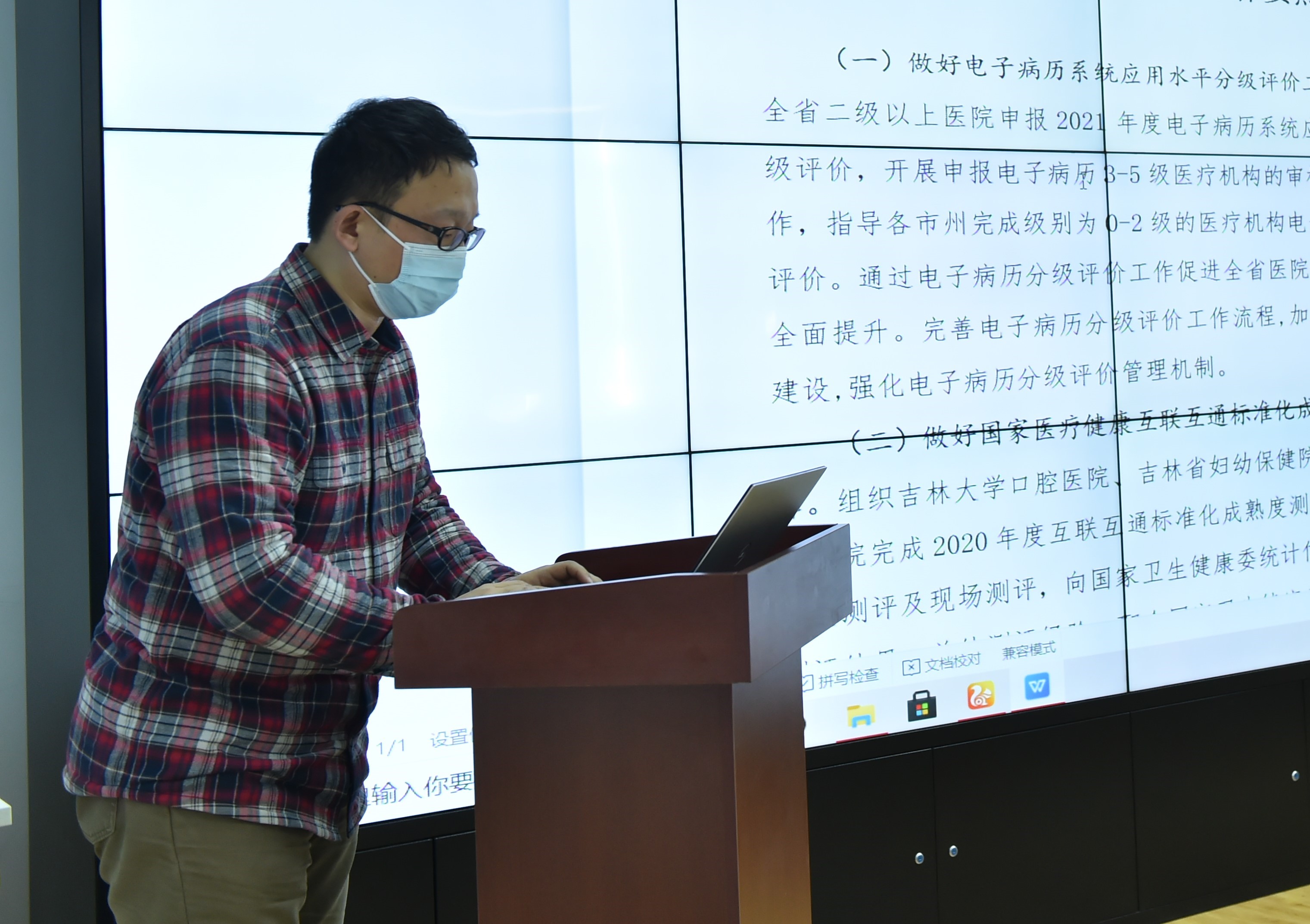 数据管理科科长张婷婷结合会议精神,从加强常规卫生统计数据、吉林省医院质量管理与绩效评价数据、中医药监测数据、老龄健康相关数据、互联网问诊数据的采集及做好数据质量提升与应用管理工作等方面汇报2021年工作思路。
