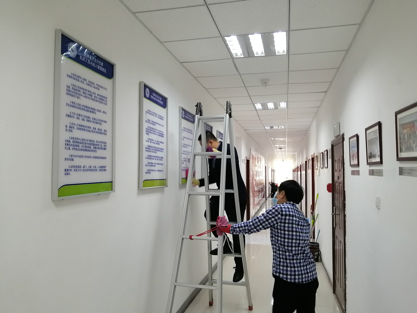 各科室先对建政路971号办公楼公共区域进行卫生清扫,大家按照卫生责任区的分工,有条不紊地完成着一系列清扫整理工作,扫地、拖地、擦洗大屏和宣传栏、清理杂物……大扫除进行的热火朝天。在大扫除过程中,大家不怕脏不怕累,互相配合,把各个角落打扫的干干净净。然后,大家又彻底打扫各自的办公室,将桌椅、电脑表面灰尘清扫干净。