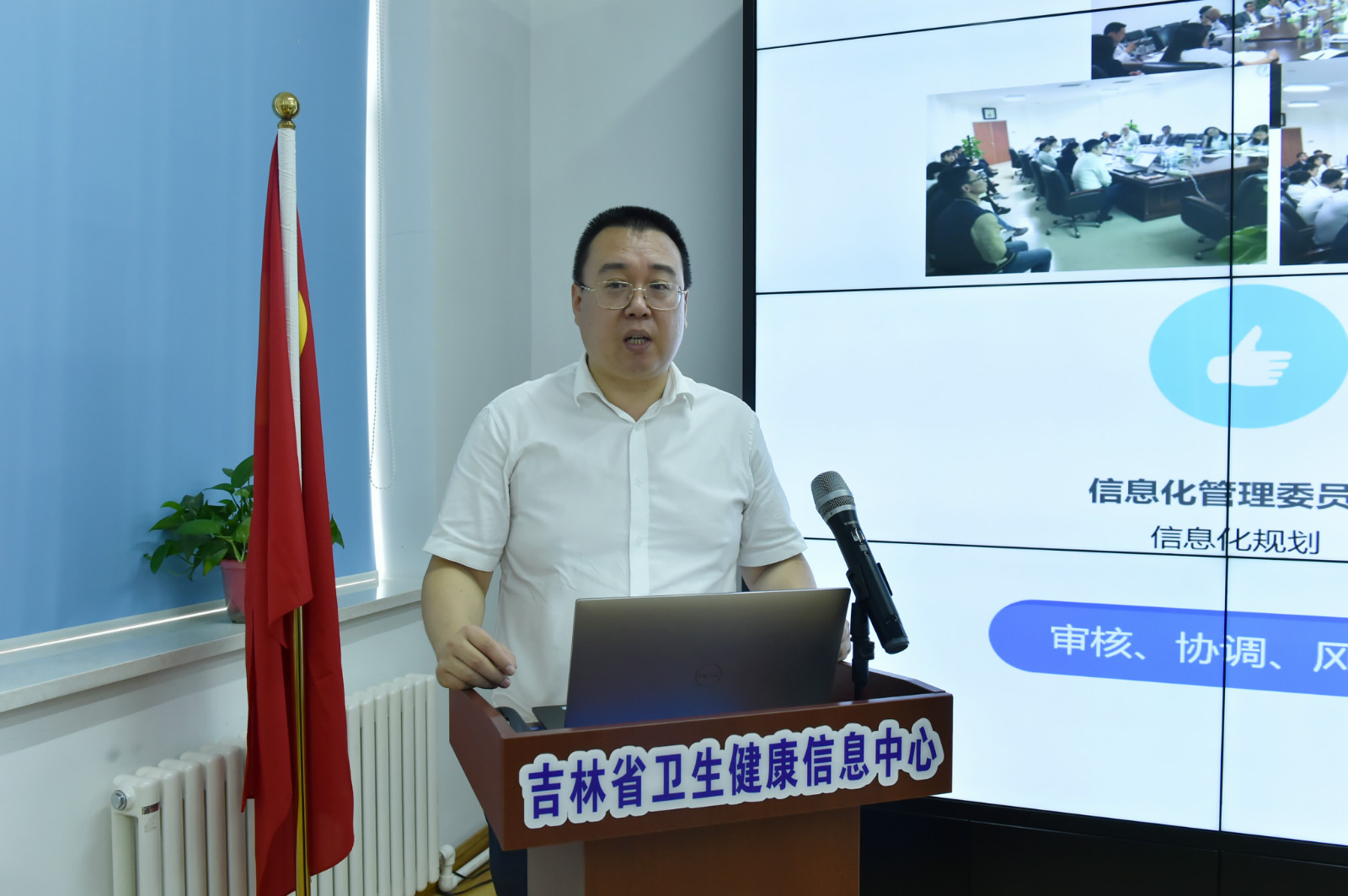 2021年7月14日,吉林省卫生健康信息中心召开会议,传达10日在武汉召开的中国卫生信息技术交流大会精神。学习国家卫生健康委规划发展与信息化司司长毛群安在开幕式上的讲话,国家卫生健康委统计信息中心主任吴士勇在大会上做的题为《新起点 新蓝图 新作为 ——让健康中国插上数字翅膀》主题演讲、副主任胡建平在大会闭幕式上所做《奋进 展翅 引航——构建数字健康双轮驱动新发展格局》报告。在长中省直医疗卫生单位信息中心负责同志参加会议,省卫生健康信息中心副主任武金玲主持会议。