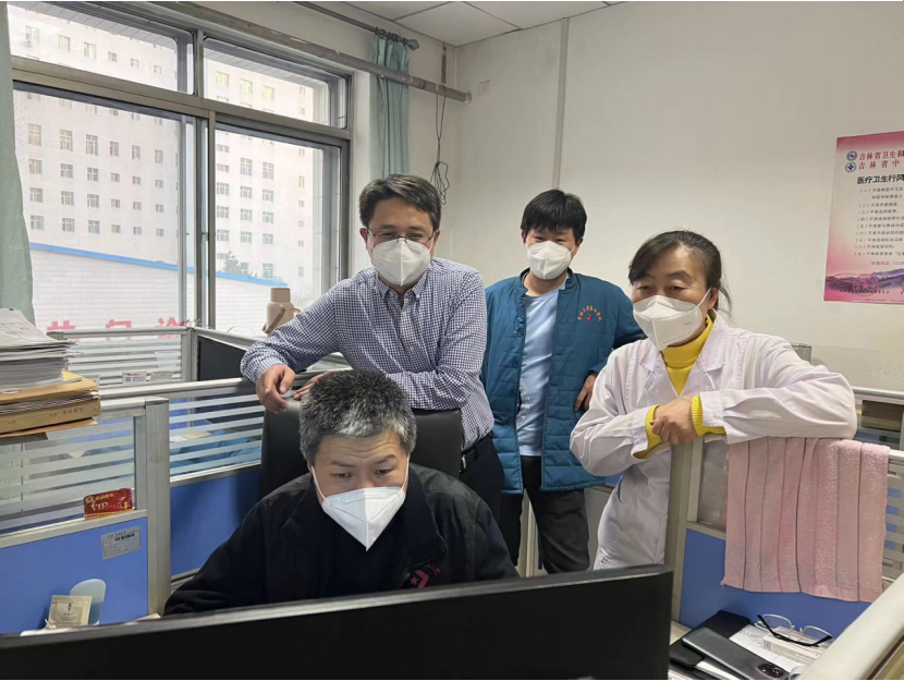 3月21日,吉大二院整体接管公主岭462方舱医院。因当地医院信息化人手短缺,使用462医院的信息系统大家不熟悉,应用不流畅,需要支援。在吴敏飞副院长的统一指挥和协调下,25日晚间,陈彦东主任与长春新天和工程师朱文彬到现场支援,梳理信息管理流程,制定操作流程,培训系统应用,为方舱医院信息系统的稳定运行奠定了基础。