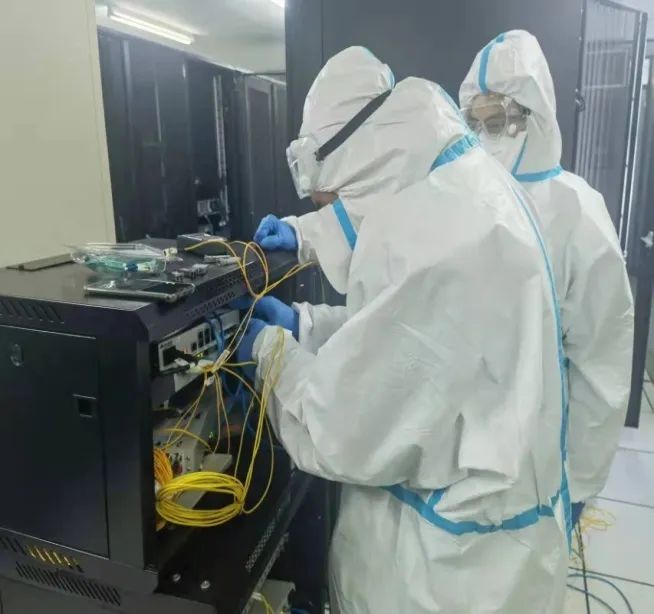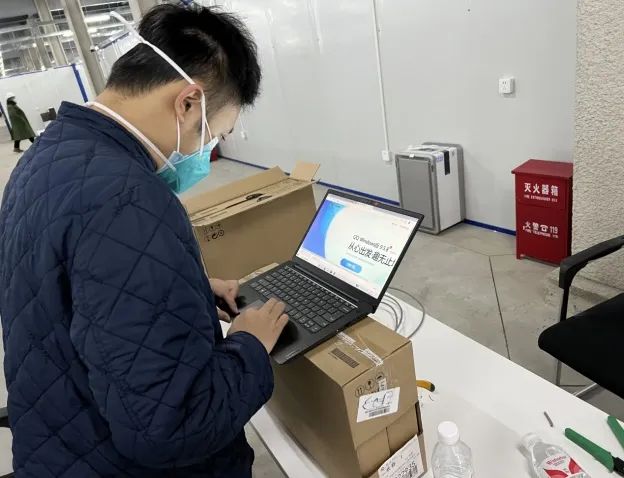 3月10日,方舱医院建设完成。为了保障系统平稳运行,张朕源和马瑞鸿两名同志自告奋勇成为前两批在前线技术支援的逆行者。