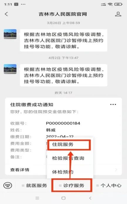 4月11日,医院根据疫情防控需要,要求住院患者使用手机公众号缴纳住院押金。信息科紧急协调HIS工程师和公众号工程师,用了2天时间完成了相关功能开发和联调工作。