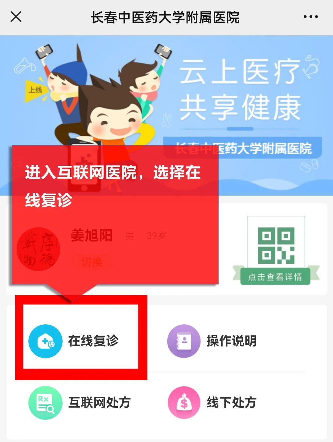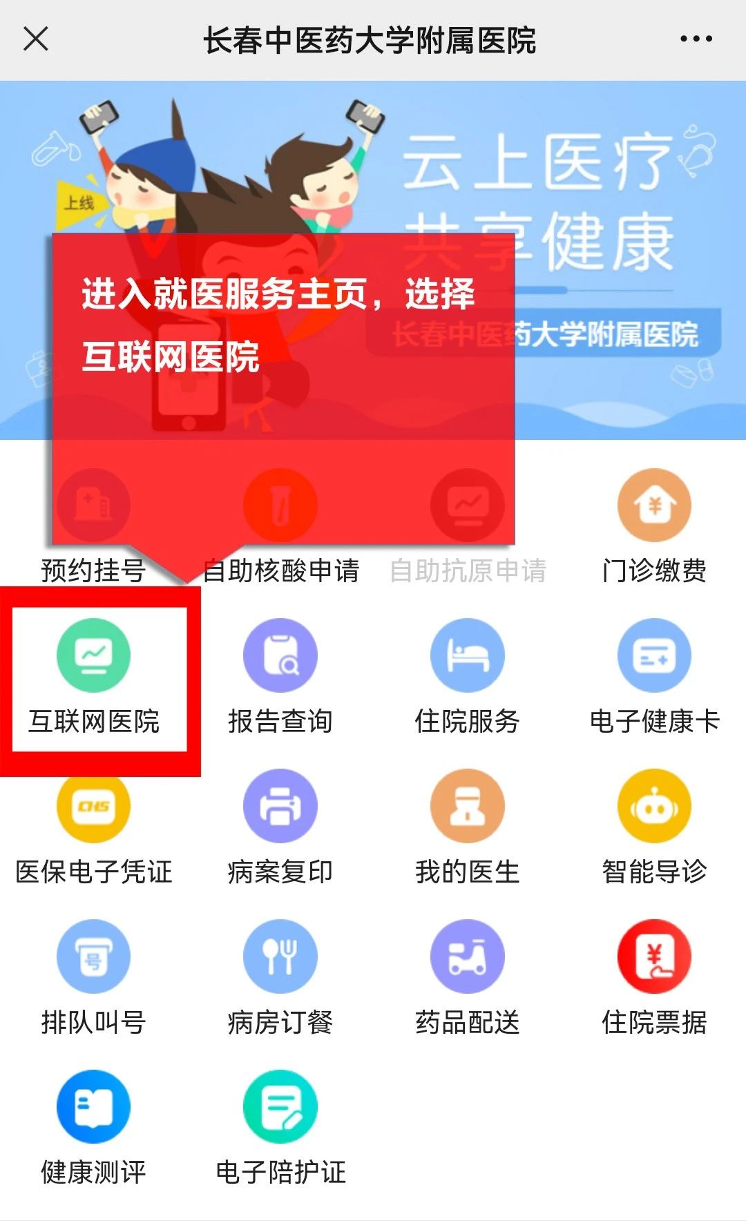 长春中医药大学附属医院现已开通互联网医院,关注“长春中医药大学附属医院服务号”,在线复诊、在线咨询、互联网处方、邮药到家、足不出户就可以享受高质量诊疗服务。