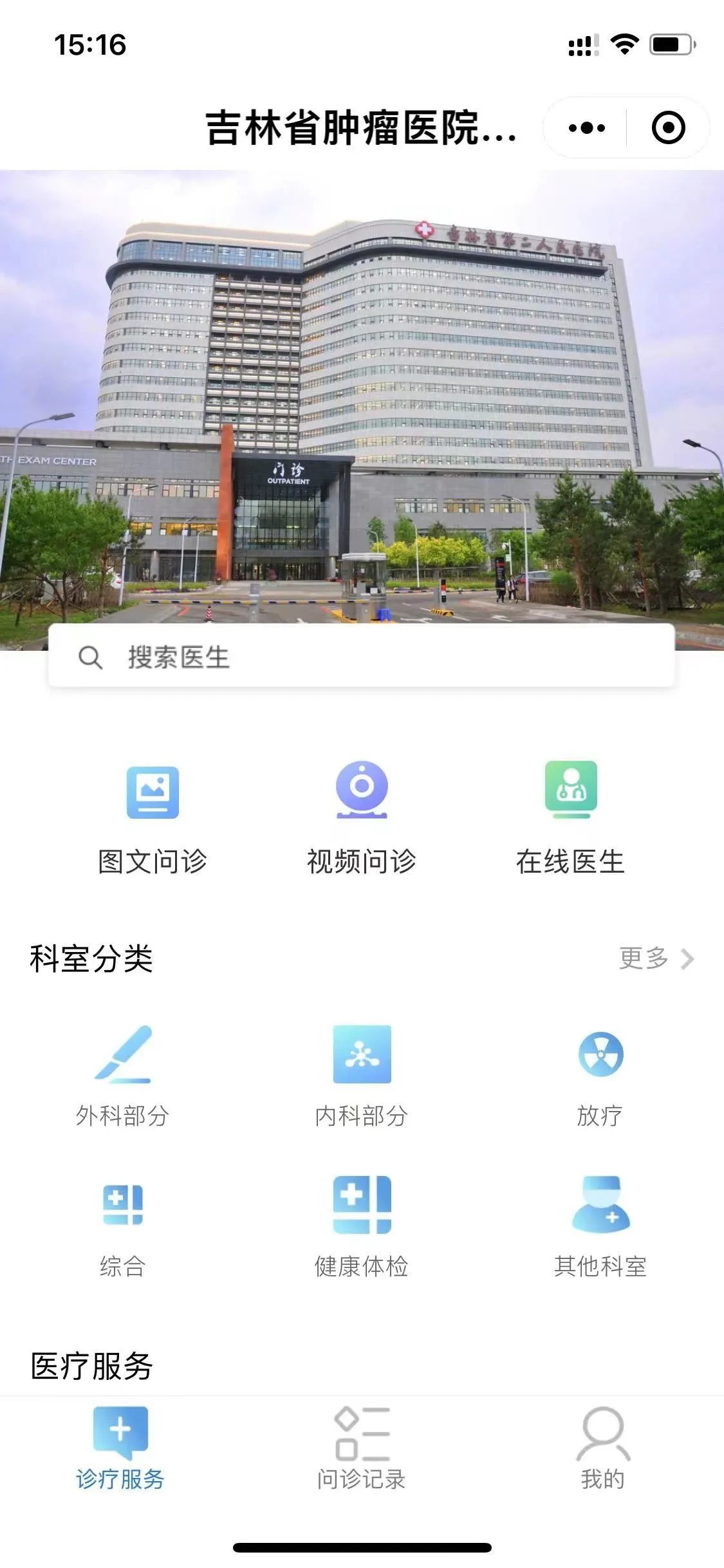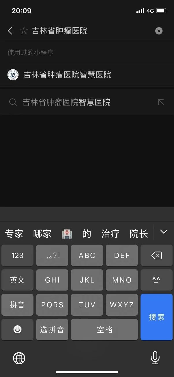 在微信小程序中搜索“吉林省肿瘤医院”,搜索到“吉林省肿瘤医院智慧医院”微信小程序。