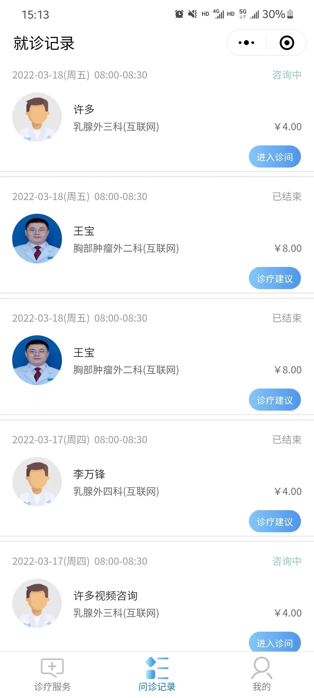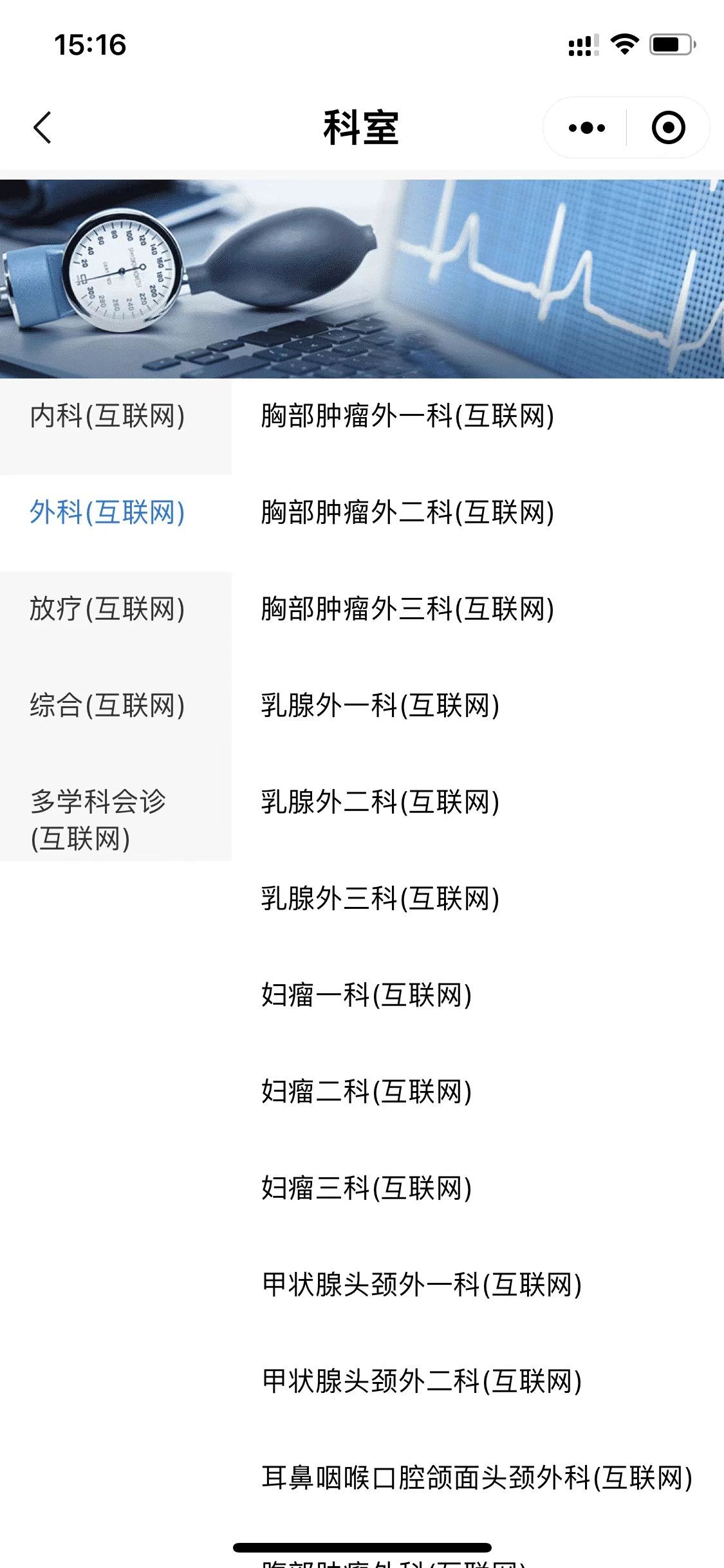 点击胸部肿瘤外二科(互联网)从中选择要看诊的医生。