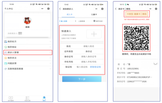 第二步:添加就诊人,录入身份信息,绑定电子居民健康卡。