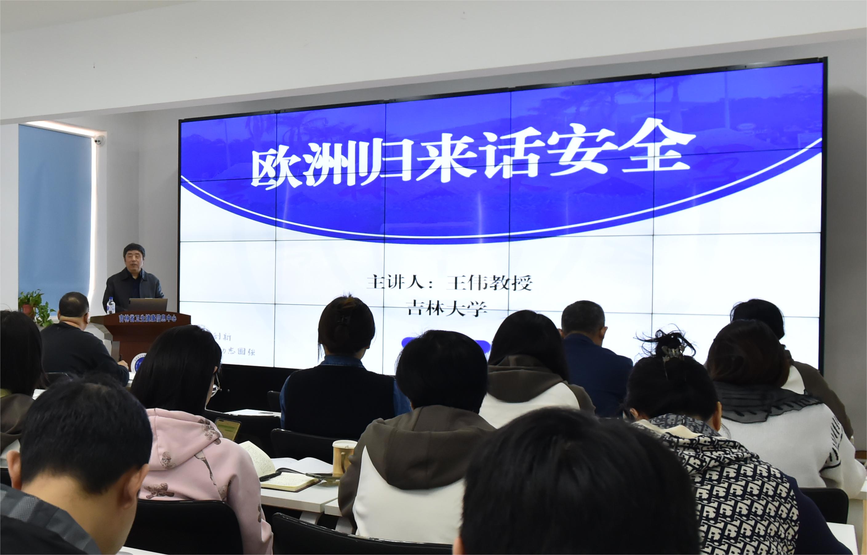 王伟教授的讲座分四部分内容,一是总体国家安全观——再学习、再认识、再思考;二是挑战与威胁——相关智库的分析研判;三是我所看到的欧洲——要和平、不要战争是主流;四是总体国家安全观的落地与实践——卫生健康数据安全。