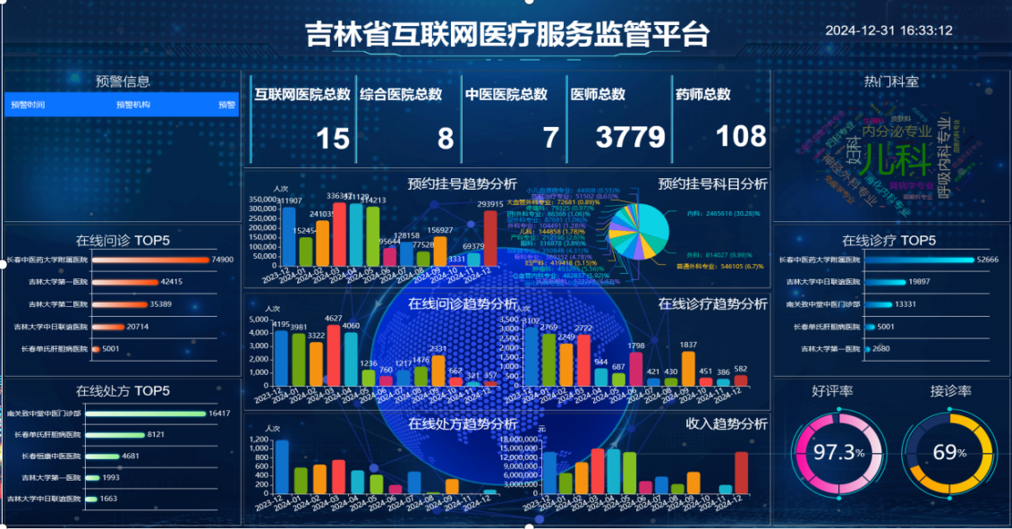 省互联网医疗服务监管平台是全省互联网医院准入审批、实时业务监管和效果评价的信息平台。通过采集各互联网医院业务数据,从事前提醒、事中控制、事后追溯等方面进行全过程监管。截止目前,全省共有15家互联网医院获得运营资质,2024年共为群众提供线上服务224万人次。