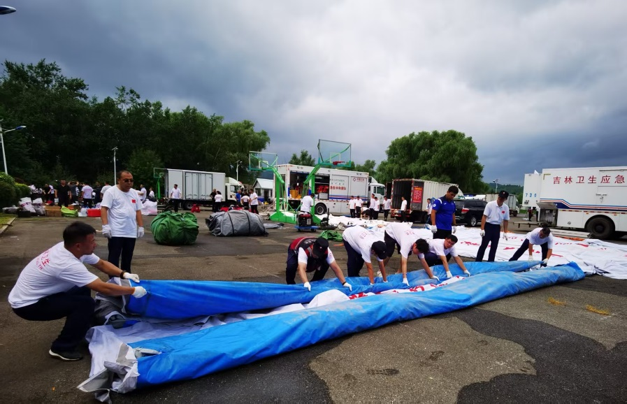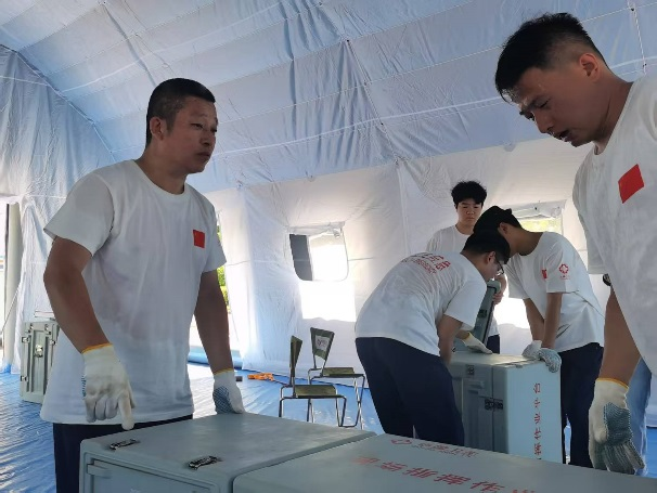 在营地和指挥部搭建科目中,信息保障组在郭景辉、孙宇的带领下,按照“安全就近、方便指挥”的原则,快速搭建指挥部,配备基本办公设备,具备会商会议能力。演习结束后,信息保障组清理现场、清运垃圾,恢复环境卫生。