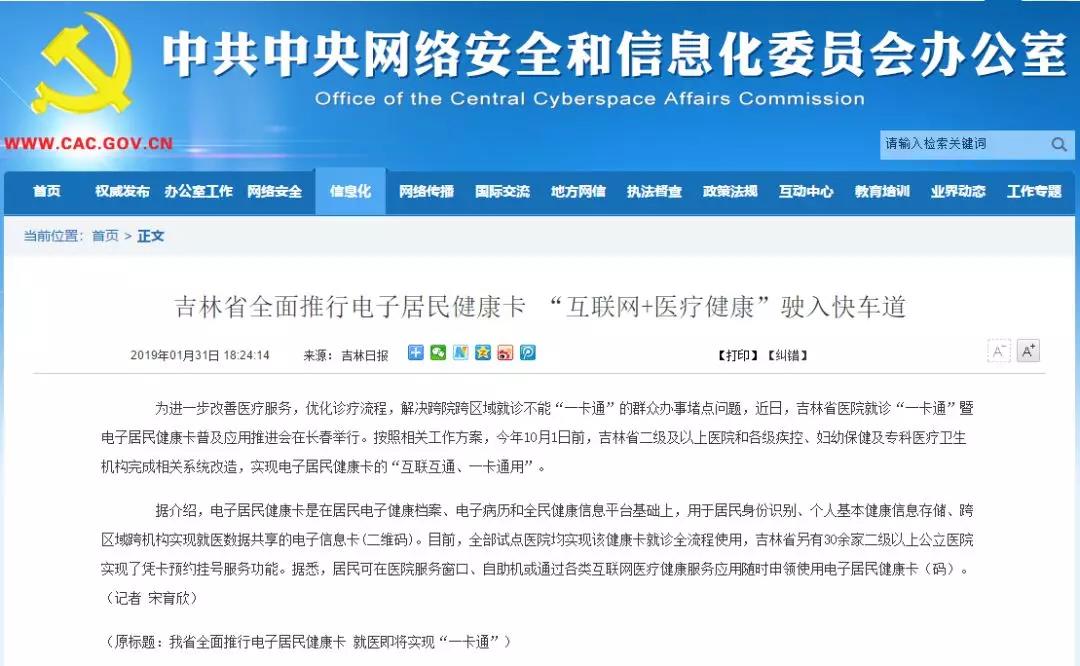 为进一步改善医疗服务,优化诊疗流程,解决跨院跨区域就诊不能“一卡通”的群众办事堵点问题,近日,吉林省医院就诊“一卡通”暨电子居民健康卡普及应用推进会在长春举行。按照相关工作方案,今年10月1日前,吉林省二级及以上医院和各级疾控、妇幼保健及专科医疗卫生机构完成相关系统改造,实现电子居民健康卡的“互联互通、一卡通用”。